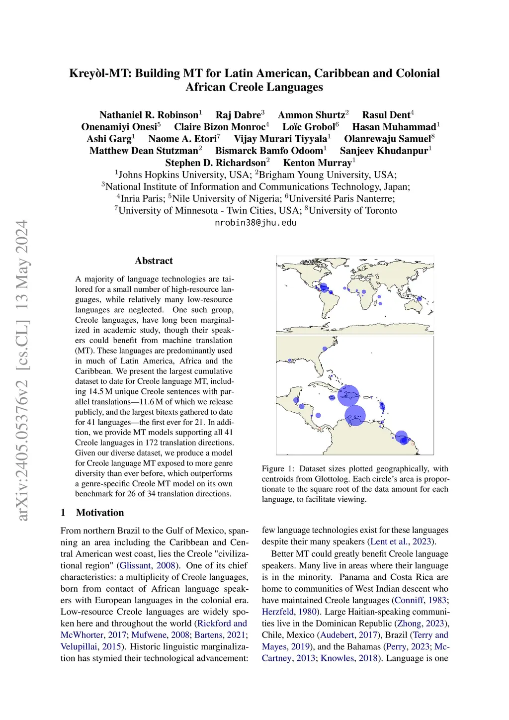 Kreyòl-MT: Building MT for Latin American, Caribbean and Colonial