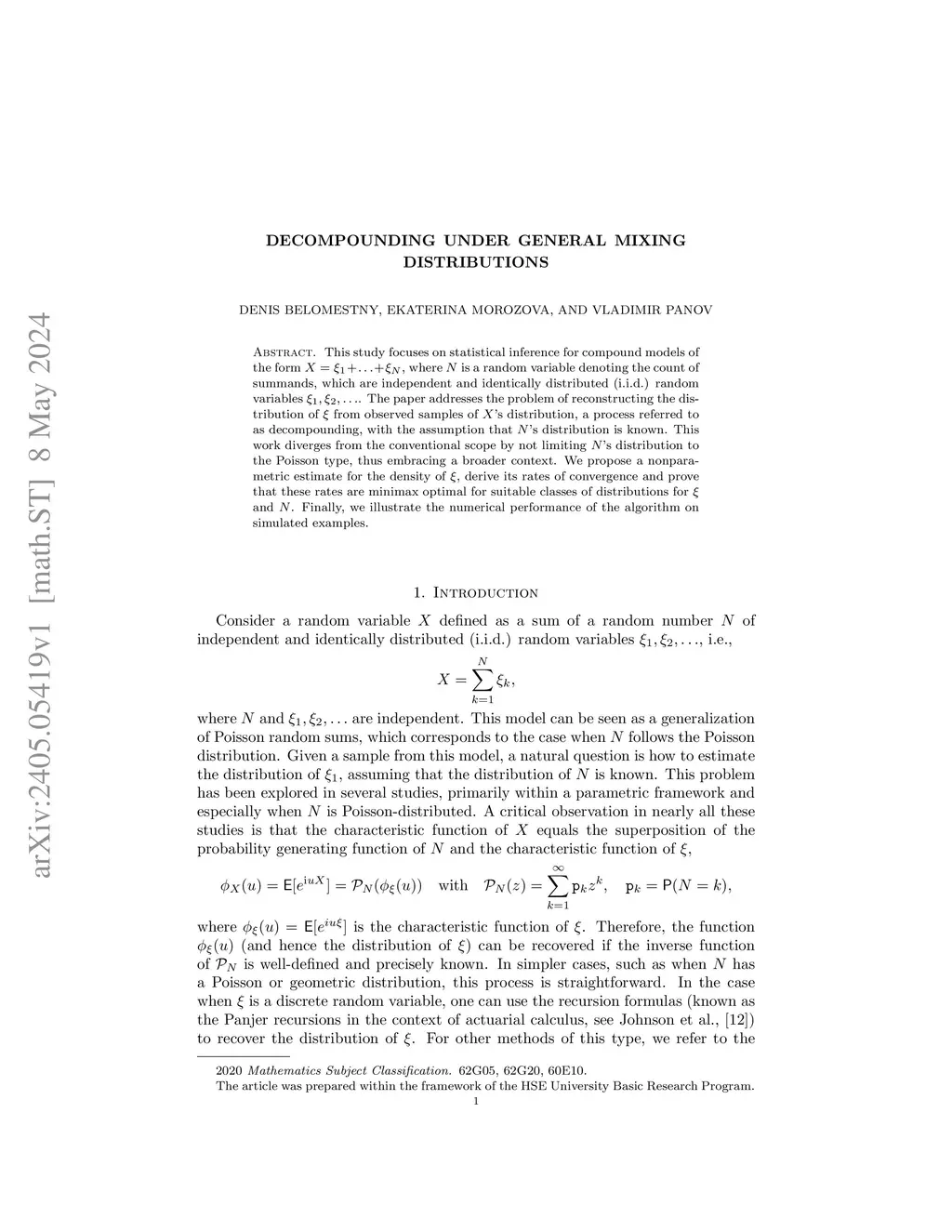 This study focuses on statistical inference for compound models of the form , where is a random variable denoting the count of summands, which are independent and identically distributed (i.i.d.) random variables . The paper addresses the problem of reconstructing the distribution of from observed samples of 's distribution, a process referred to as decompounding, with the assumption that 's distribution is known. This work diverges from the conventional scope by not limiting 's distribution to the Poisson type, thus embracing a broader context. We propose a nonparametric estimate for the density of , derive its rates of convergence and prove that these rates are minimax optimal for suitable classes of distributions for and . Finally, we illustrate the numerical performance of the algorithm on simulated examples.
