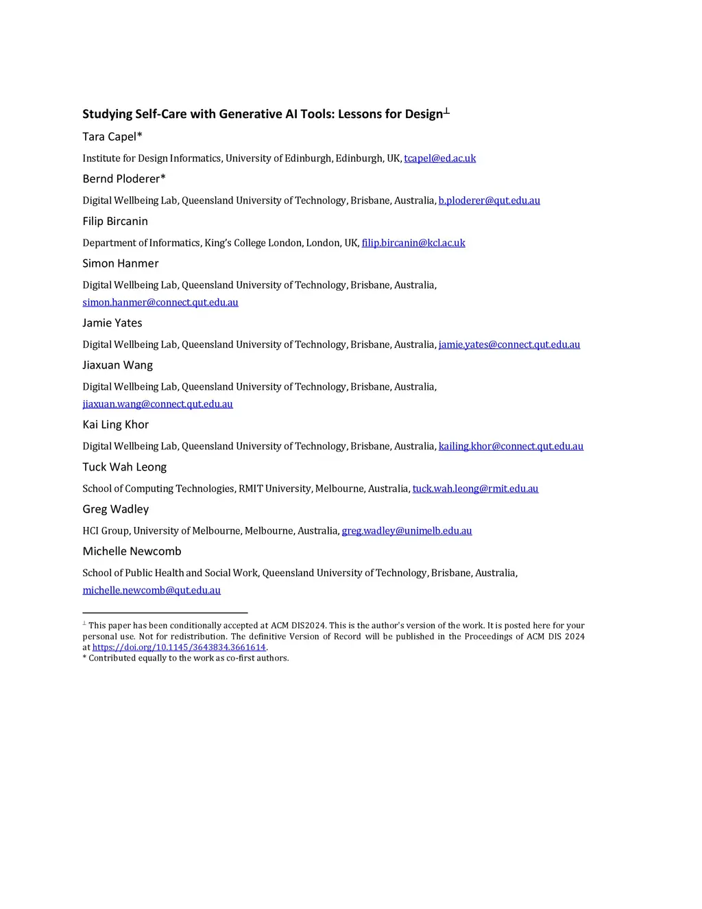 Studying Self-Care with Generative AI Tools: Lessons for Design