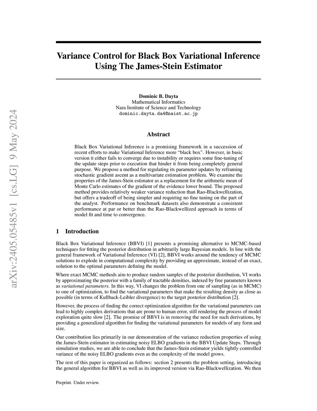 Black Box Variational Inference is a promising framework in a succession of recent efforts to make Variational Inference more ``black box". However, in basic version it either fails to converge due to instability or requires some fine-tuning of the update steps prior to execution that hinder it from being completely general purpose. We propose a method for regulating its parameter updates by reframing stochastic gradient ascent as a multivariate estimation problem. We examine the properties of the James-Stein estimator as a replacement for the arithmetic mean of Monte Carlo estimates of the gradient of the evidence lower bound. The proposed method provides relatively weaker variance reduction than Rao-Blackwellization, but offers a tradeoff of being simpler and requiring no fine tuning on the part of the analyst. Performance on benchmark datasets also demonstrate a consistent performance at par or better than the Rao-Blackwellized approach in terms of model fit and time to convergence.
