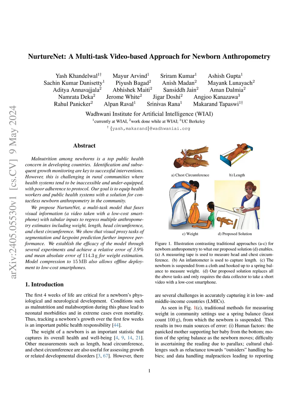 NurtureNet: A Multi-task Video-based Approach for Newborn Anthropometry
