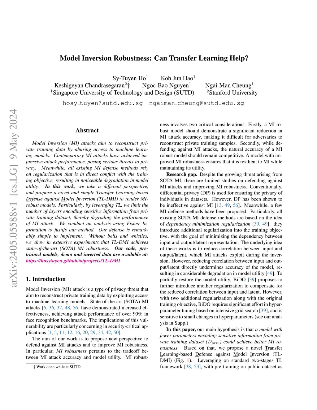 Model Inversion Robustness: Can Transfer Learning Help?