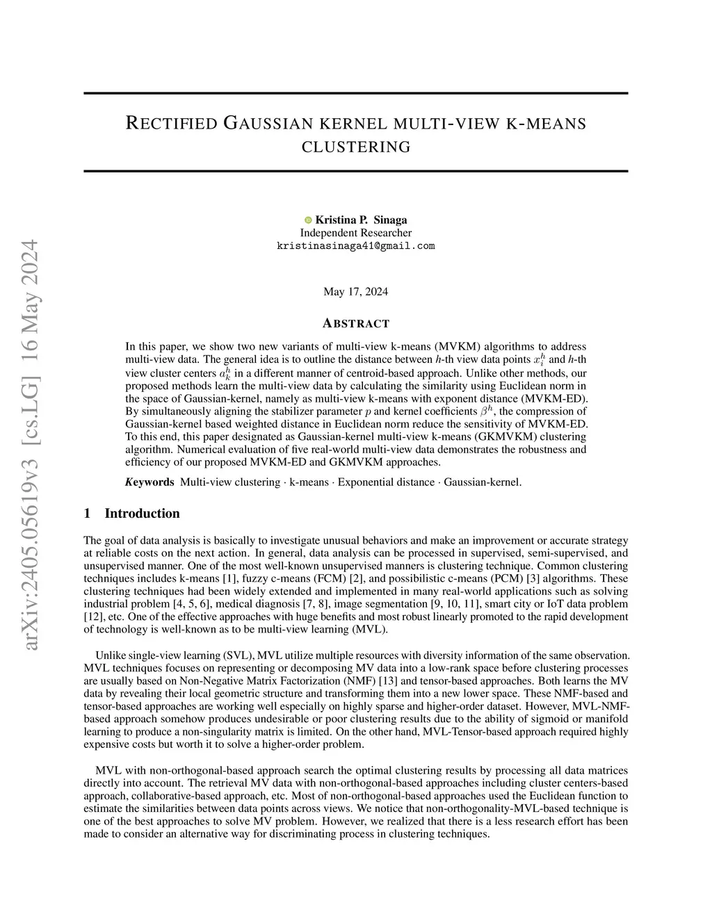 Rectified Gaussian kernel multi-view k-means clustering