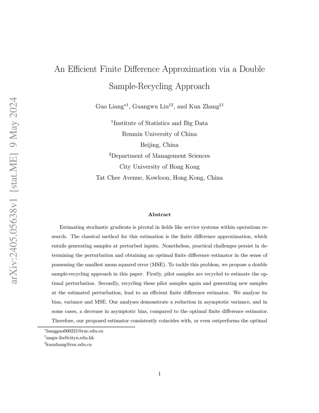 Finite difference (FD) approximation is a classic approach to stochastic gradient estimation when only noisy function realizations are available. In this paper, we first provide a sample-driven method via the bootstrap technique to estimate the optimal perturbation, and then propose an efficient FD estimator based on correlated samples at the estimated optimal perturbation. Furthermore, theoretical analyses of both the perturbation estimator and the FD estimator reveal that, {\it surprisingly}, the correlation enables the proposed FD estimator to achieve a reduction in variance and, in some cases, a decrease in bias compared to the traditional optimal FD estimator. Numerical results confirm the efficiency of our estimators and align well with the theory presented, especially in scenarios with small sample sizes. Finally, we apply the estimator to solve derivative-free optimization (DFO) problems, and numerical studies show that DFO problems with 100 dimensions can be effectively solved.