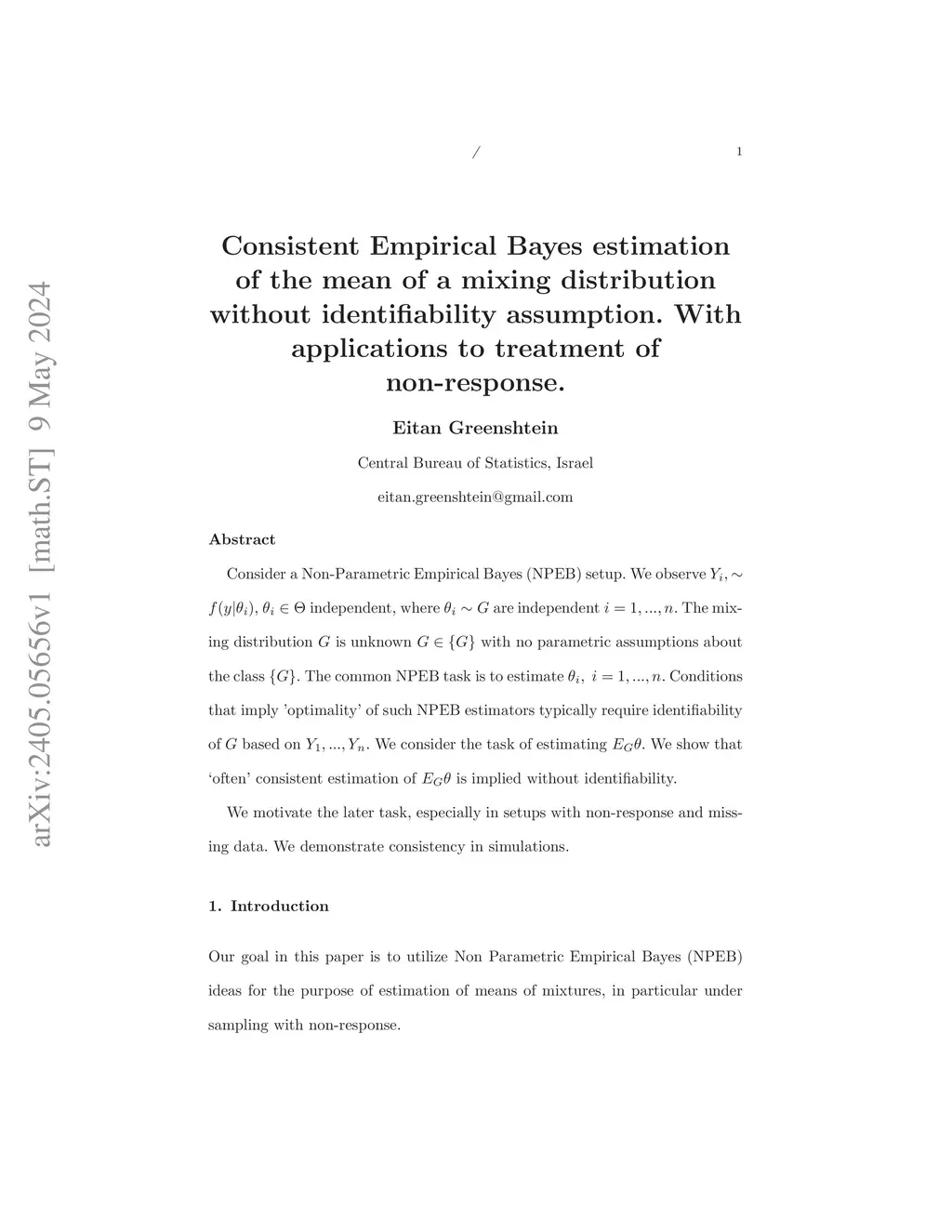 {\bf Abstract} Consider a Non-Parametric Empirical Bayes (NPEB) setup. We observe , independent, where are independent . The mixing distribution is unknown with no parametric assumptions about the class . The common NPEB task is to estimate . Conditions that imply óptimality' of such NPEB estimators typically require identifiability of based on . We consider the task of estimating . We show that `often' consistent estimation of is implied without identifiability. We motivate the later task, especially in setups with non-response and missing data. We demonstrate consistency in simulations.