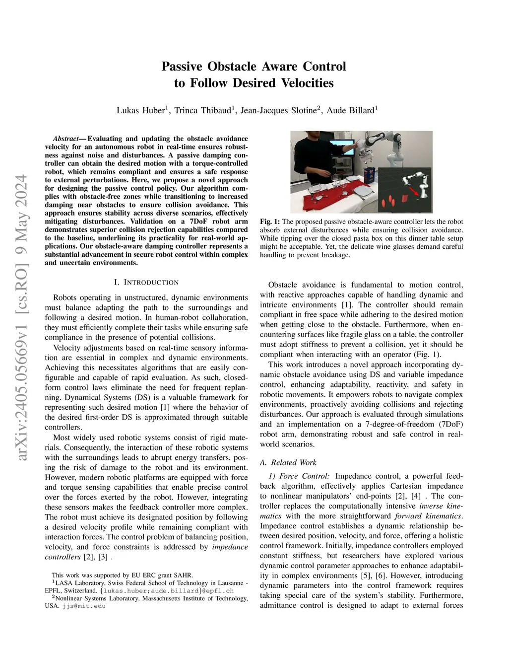 Passive Obstacle Aware Control to Follow Desired Velocities