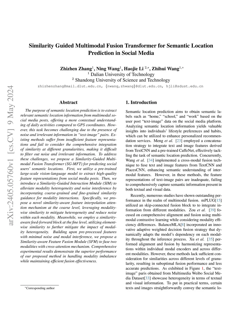 Similarity Guided Multimodal Fusion Transformer for Semantic Location