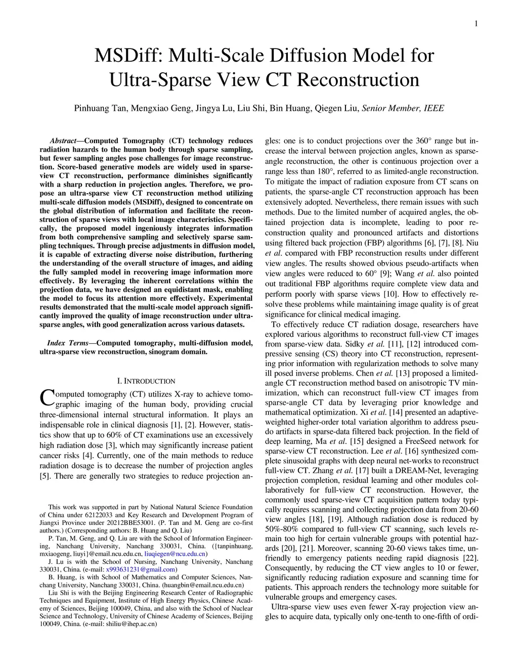 Computed Tomography (CT) technology reduces radiation haz-ards to the human body through sparse sampling, but fewer sampling angles pose challenges for image reconstruction. Score-based generative models are widely used in sparse-view CT re-construction, performance diminishes significantly with a sharp reduction in projection angles. Therefore, we propose an ultra-sparse view CT reconstruction method utilizing multi-scale dif-fusion models (MSDiff), designed to concentrate on the global distribution of information and facilitate the reconstruction of sparse views with local image characteristics. Specifically, the proposed model ingeniously integrates information from both comprehensive sampling and selectively sparse sampling tech-niques. Through precise adjustments in diffusion model, it is capable of extracting diverse noise distribution, furthering the understanding of the overall structure of images, and aiding the fully sampled model in recovering image information more effec-tively. By leveraging the inherent correlations within the projec-tion data, we have designed an equidistant mask, enabling the model to focus its attention more effectively. Experimental re-sults demonstrated that the multi-scale model approach signifi-cantly improved the quality of image reconstruction under ultra-sparse angles, with good generalization across various datasets.
