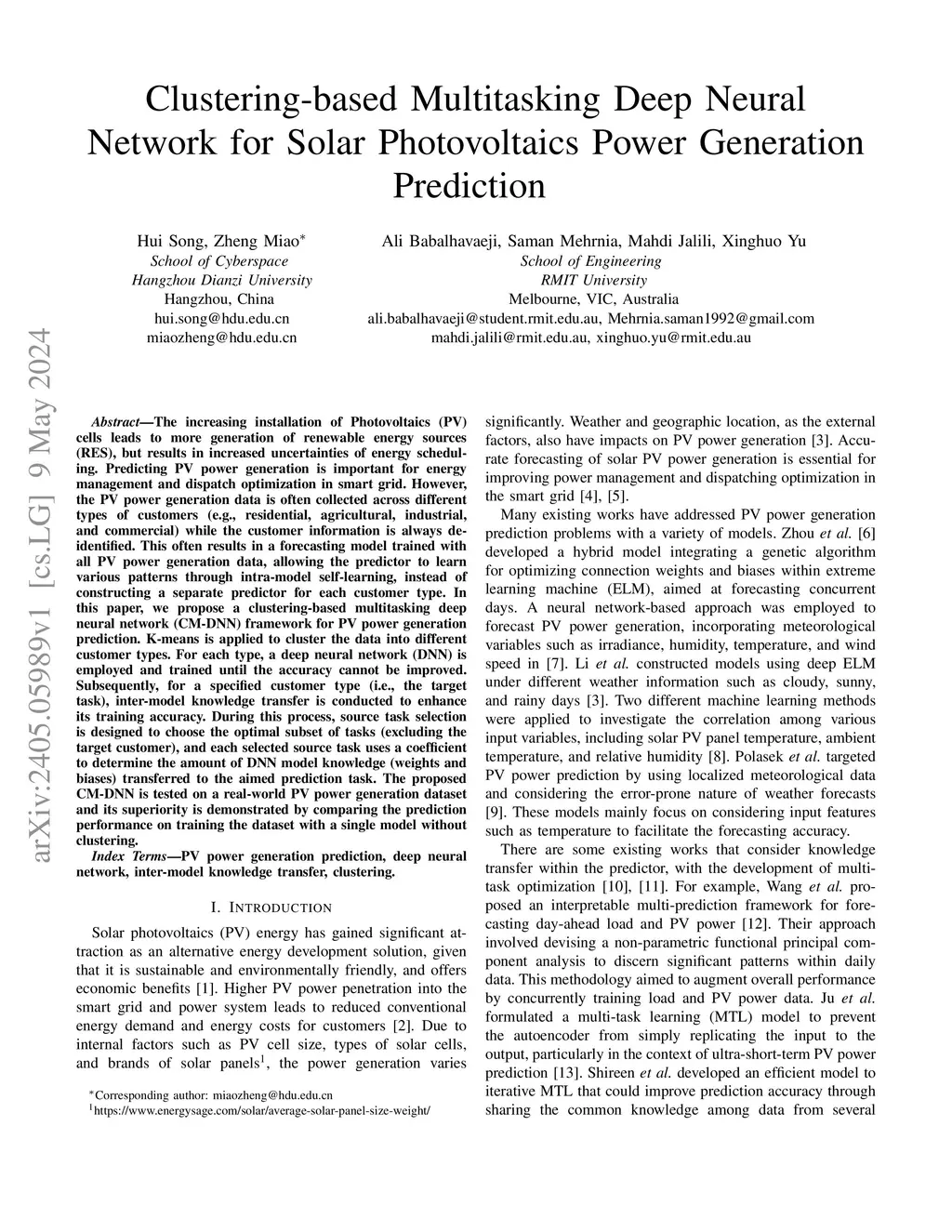 Clustering-based Multitasking Deep Neural Network for Solar