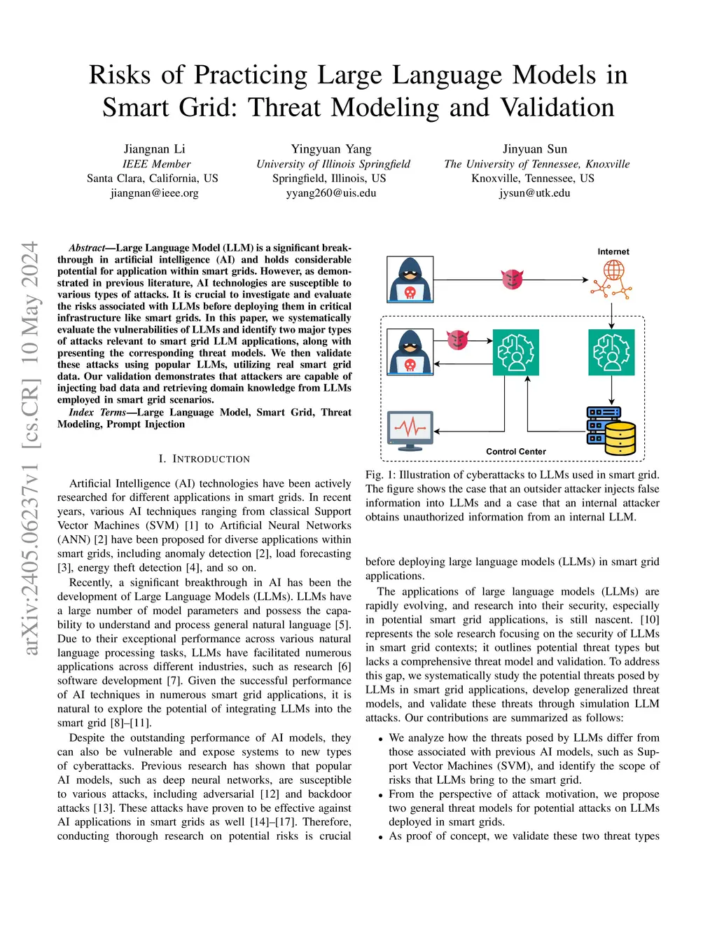 Risks of Practicing Large Language Models in Smart Grid: Threat Modeling and Validation