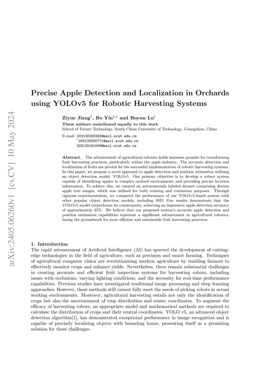 Precise Apple Detection and Localization in Orchards using YOLOv5 for