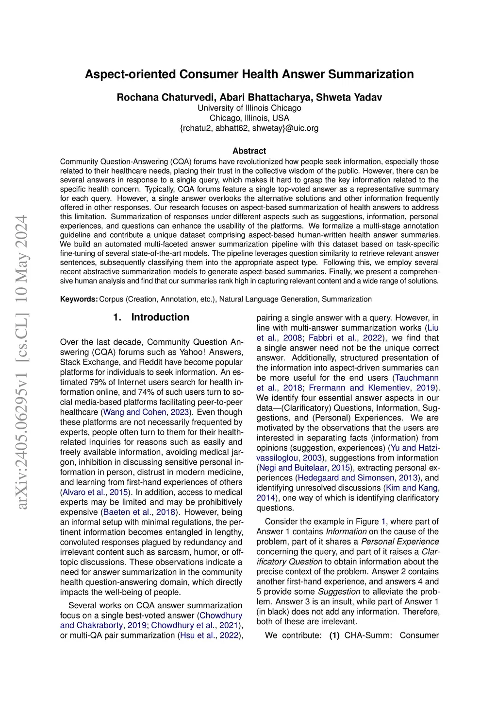 Aspect-oriented Consumer Health Answer Summarization