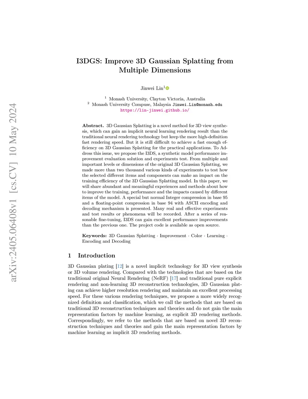 3D Gaussian Splatting is a novel method for 3D view synthesis, which can gain an implicit neural learning rendering result than the traditional neural rendering technology but keep the more high-definition fast rendering speed. But it is still difficult to achieve a fast enough efficiency on 3D Gaussian Splatting for the practical applications. To Address this issue, we propose the I3DS, a synthetic model performance improvement evaluation solution and experiments test. From multiple and important levels or dimensions of the original 3D Gaussian Splatting, we made more than two thousand various kinds of experiments to test how the selected different items and components can make an impact on the training efficiency of the 3D Gaussian Splatting model. In this paper, we will share abundant and meaningful experiences and methods about how to improve the training, performance and the impacts caused by different items of the model. A special but normal Integer compression in base 95 and a floating-point compression in base 94 with ASCII encoding and decoding mechanism is presented. Many real and effective experiments and test results or phenomena will be recorded. After a series of reasonable fine-tuning, I3DS can gain excellent performance improvements than the previous one. The project code is available as open source.