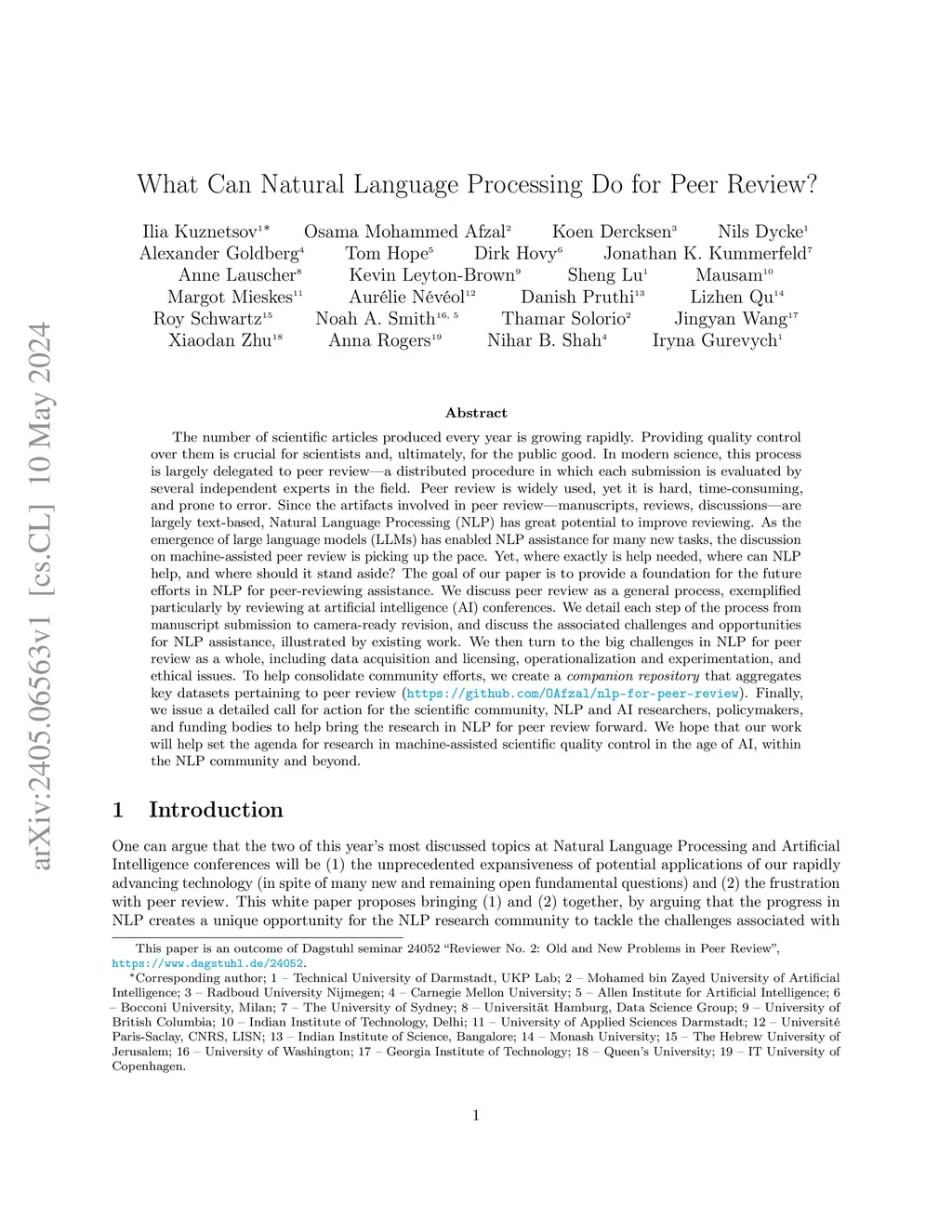What Can Natural Language Processing Do for Peer Review?