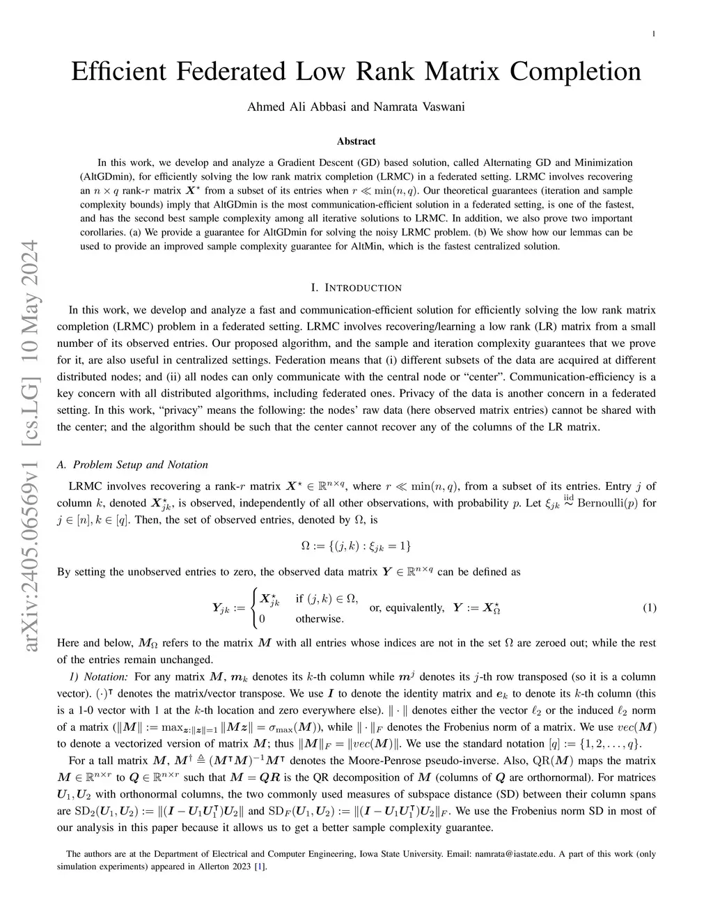 Efficient Federated Low Rank Matrix Completion
