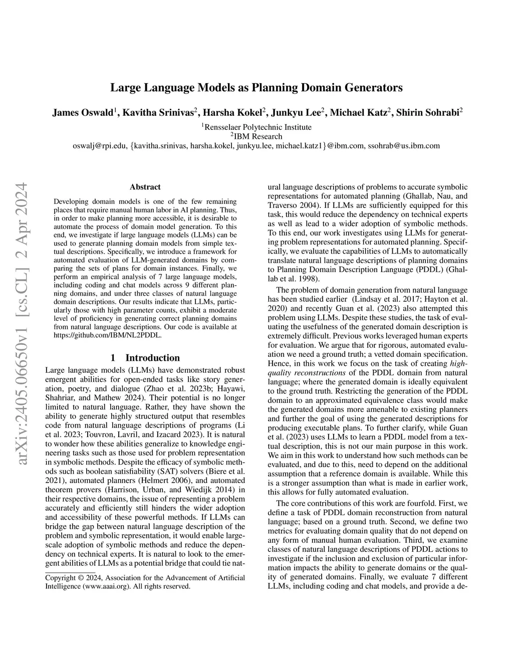 Large Language Models as Planning Domain Generators
