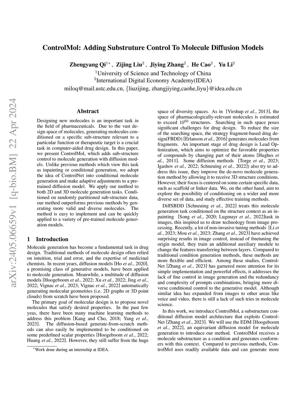 ControlMol: Adding Substruture Control To Molecule Diffusion Models