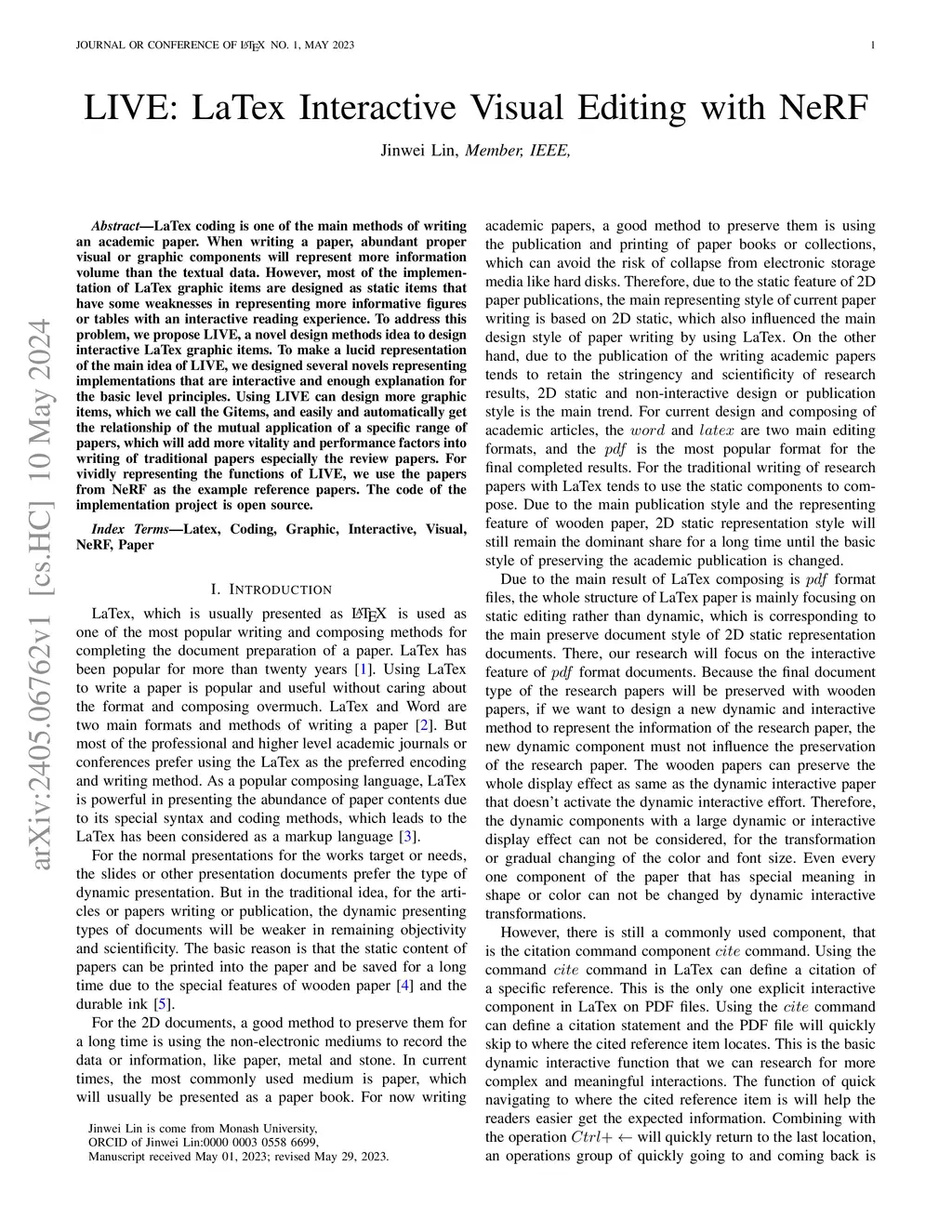 LaTex coding is one of the main methods of writing an academic paper. When writing a paper, abundant proper visual or graphic components will represent more information volume than the textual data. However, most of the implementation of LaTex graphic items are designed as static items that have some weaknesses in representing more informative figures or tables with an interactive reading experience. To address this problem, we propose LIVE, a novel design methods idea to design interactive LaTex graphic items. To make a lucid representation of the main idea of LIVE, we designed several novels representing implementations that are interactive and enough explanation for the basic level principles. Using LIVE can design more graphic items, which we call the Gitems, and easily and automatically get the relationship of the mutual application of a specific range of papers, which will add more vitality and performance factors into writing of traditional papers especially the review papers. For vividly representing the functions of LIVE, we use the papers from NeRF as the example reference papers. The code of the implementation project is open source.