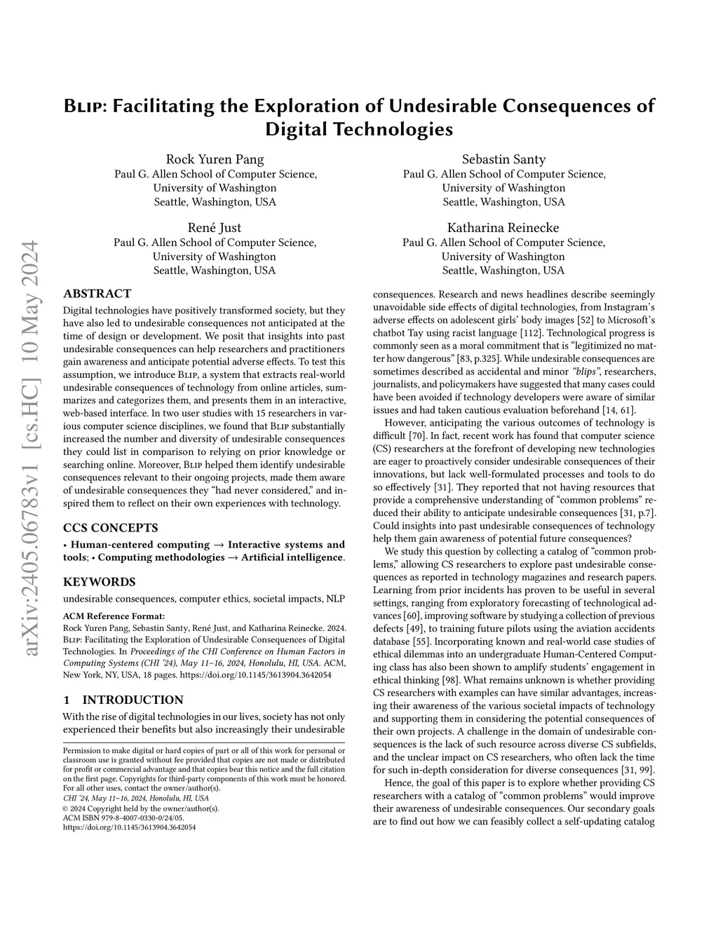 Digital technologies have positively transformed society, but they have also led to undesirable consequences not anticipated at the time of design or development. We posit that insights into past undesirable consequences can help researchers and practitioners gain awareness and anticipate potential adverse effects. To test this assumption, we introduce BLIP, a system that extracts real-world undesirable consequences of technology from online articles, summarizes and categorizes them, and presents them in an interactive, web-based interface. In two user studies with 15 researchers in various computer science disciplines, we found that BLIP substantially increased the number and diversity of undesirable consequences they could list in comparison to relying on prior knowledge or searching online. Moreover, BLIP helped them identify undesirable consequences relevant to their ongoing projects, made them aware of undesirable consequences they "had never considered," and inspired them to reflect on their own experiences with technology.