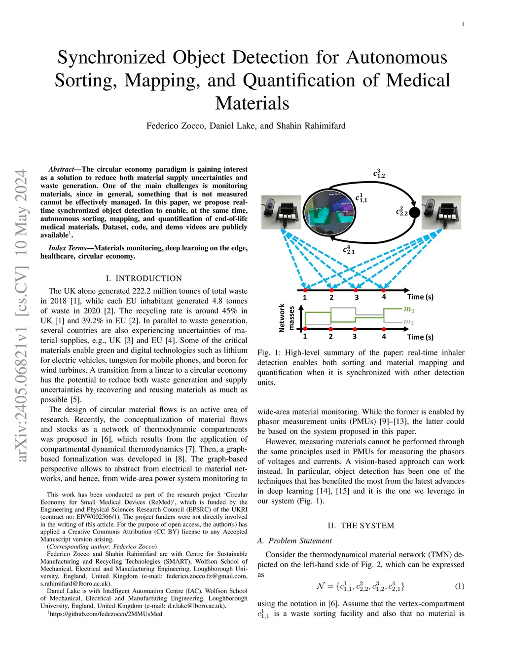 Synchronized Object Detection for Autonomous Sorting, Mapping, and Quantification of Materials in Circular Healthcare