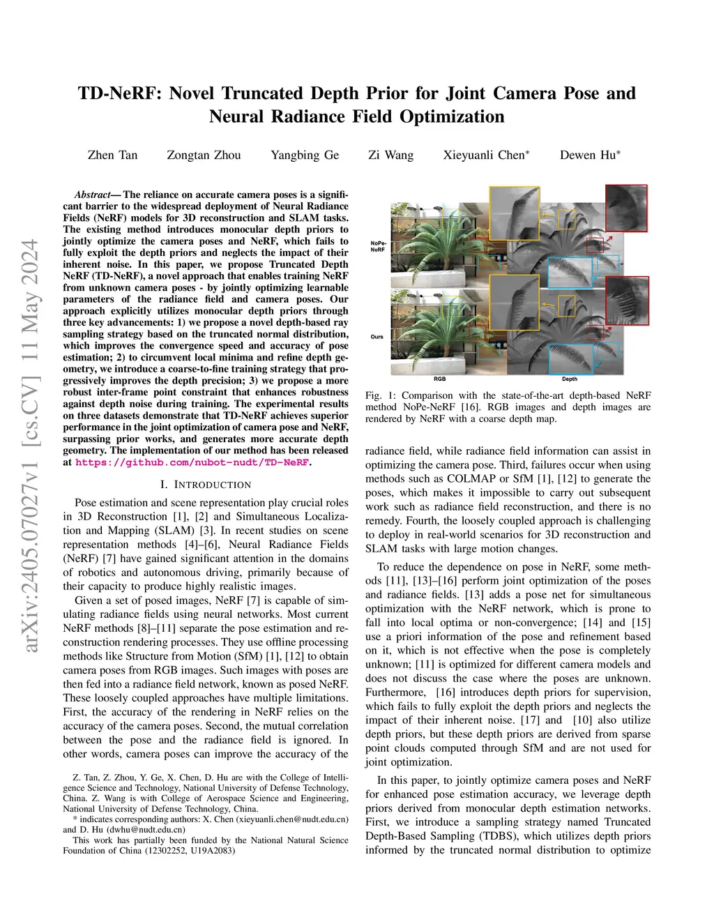TD-NeRF: Novel Truncated Depth Prior for Joint Camera Pose and Neural