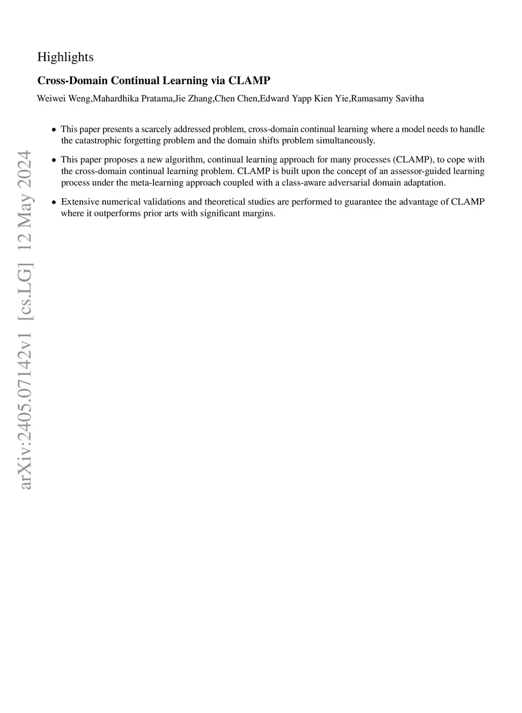 Cross-Domain Continual Learning via CLAMP