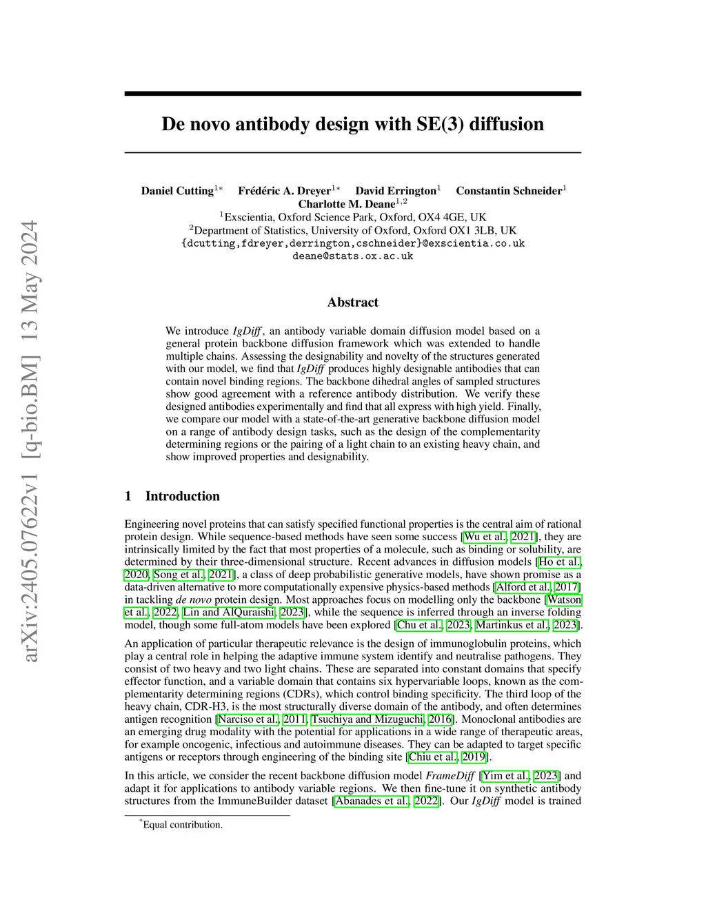 De novo antibody design with SE(3) diffusion