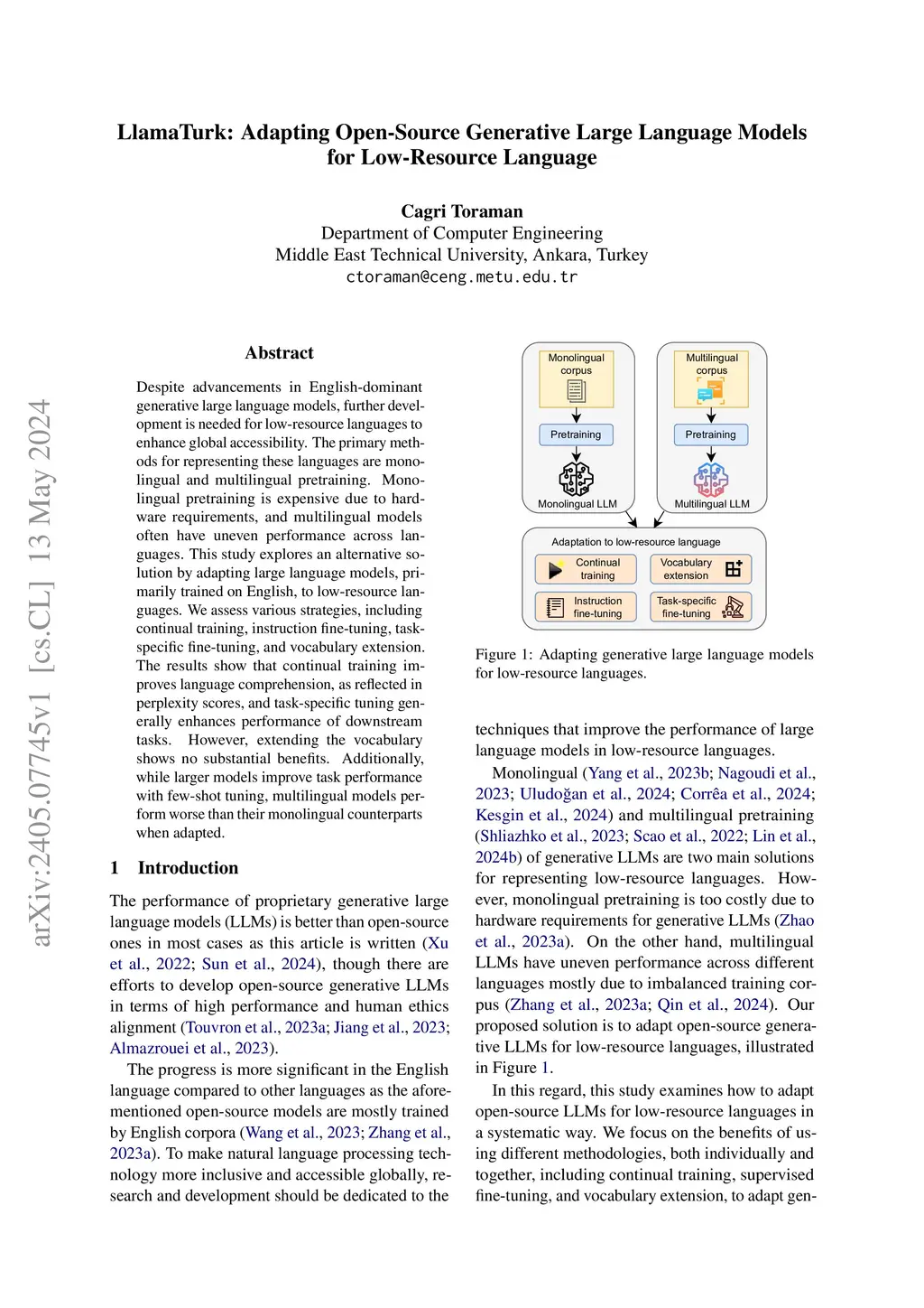 LlamaTurk: Adapting Open-Source Generative Large Language Models for