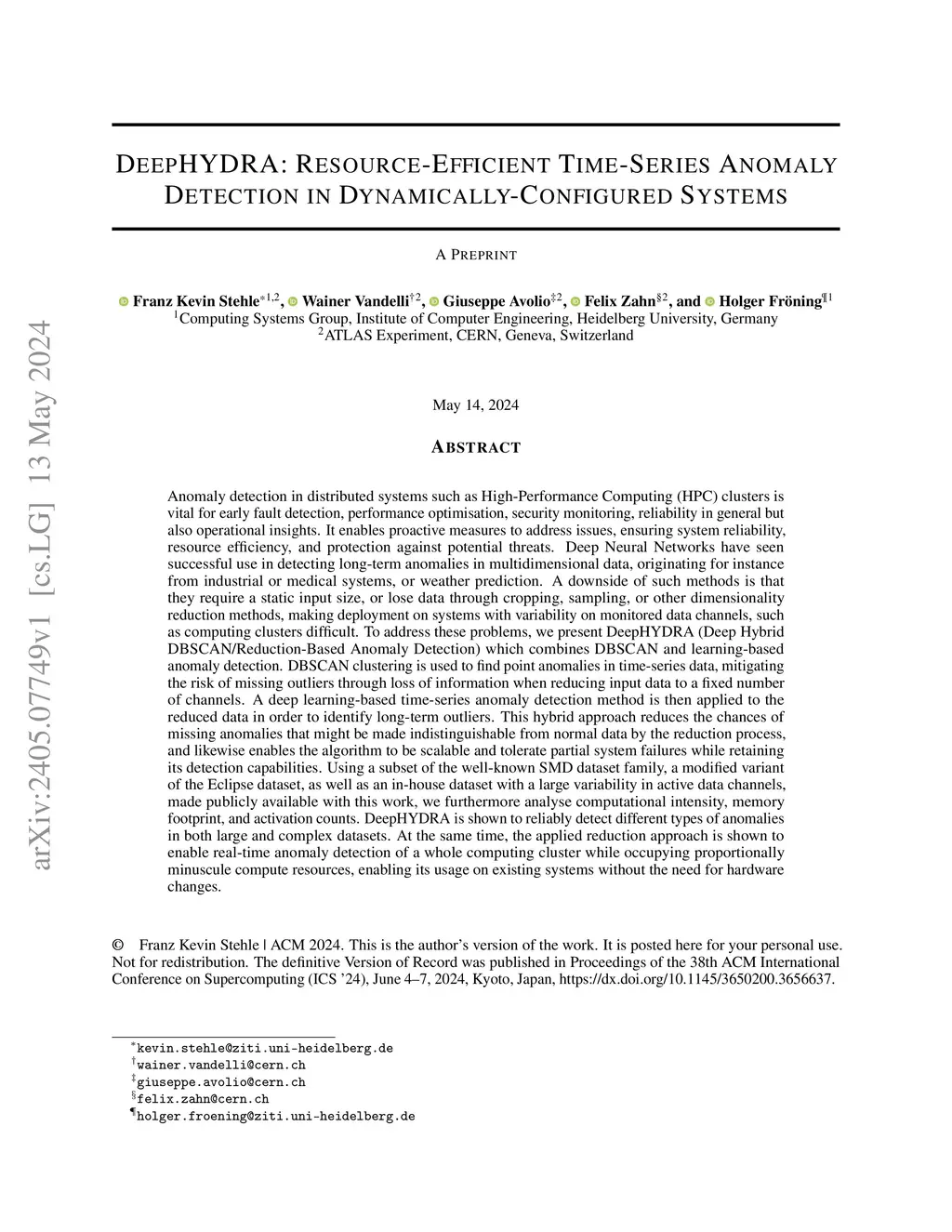 DeepHYDRA: Resource-Efficient Time-Series Anomaly Detection in