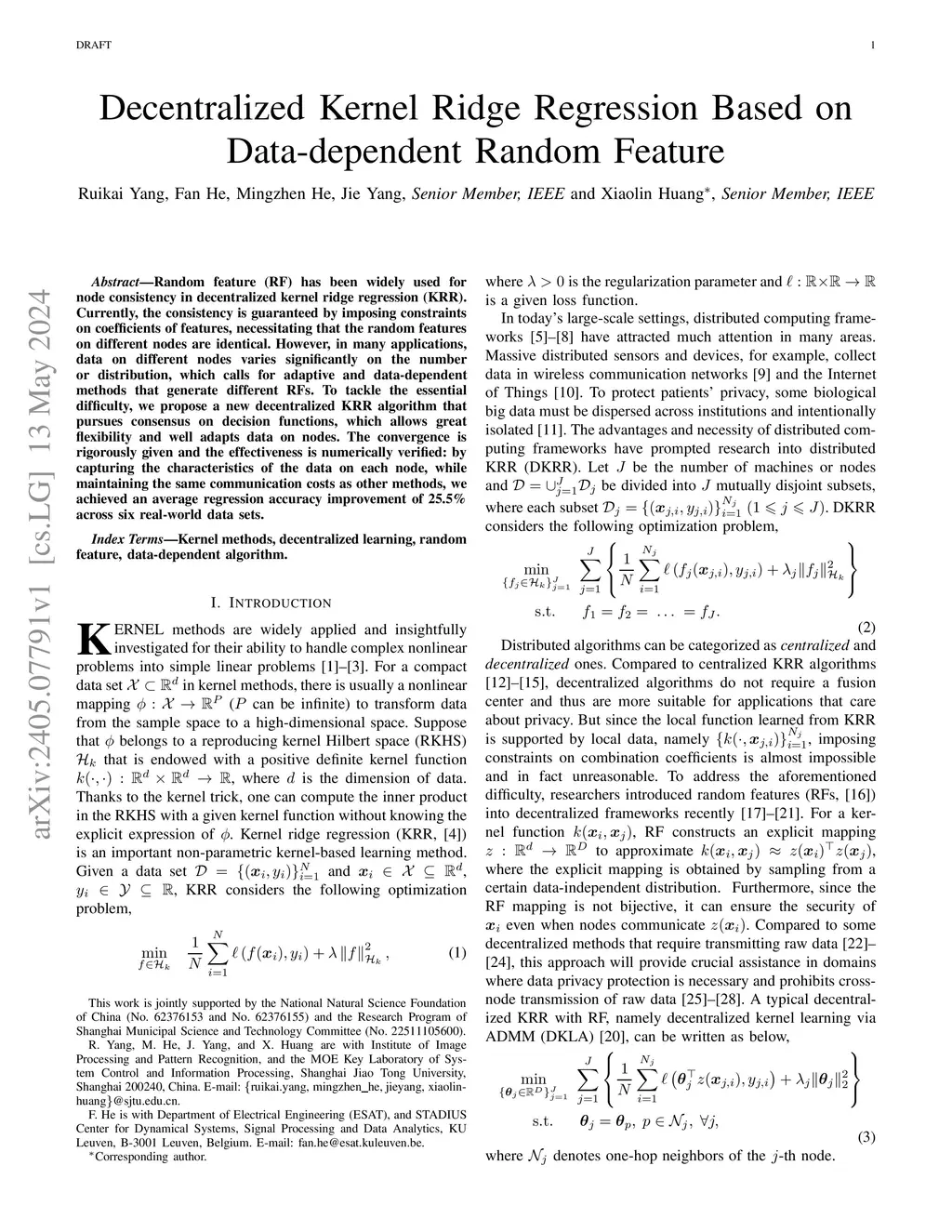 Decentralized Kernel Ridge Regression Based on Data-Dependent Random