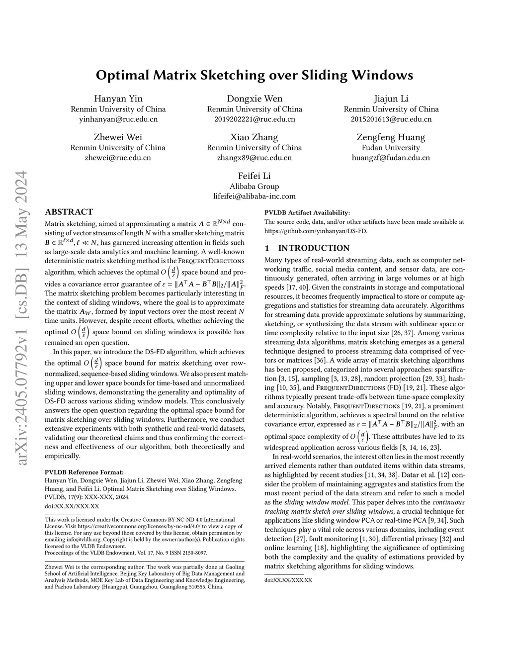 Matrix sketching, aimed at approximating a matrix consisting of vector streams of length with a smaller sketching matrix , has garnered increasing attention in fields such as large-scale data analytics and machine learning. A well-known deterministic matrix sketching method is the Frequent Directions algorithm, which achieves the optimal space bound and provides a covariance error guarantee of . The matrix sketching problem becomes particularly interesting in the context of sliding windows, where the goal is to approximate the matrix , formed by input vectors over the most recent time units. However, despite recent efforts, whether achieving the optimal space bound on sliding windows is possible has remained an open question. In this paper, we introduce the DS-FD algorithm, which achieves the optimal space bound for matrix sketching over row-normalized, sequence-based sliding windows. We also present matching upper and lower space bounds for time-based and unnormalized sliding windows, demonstrating the generality and optimality of \dsfd across various sliding window models. This conclusively answers the open question regarding the optimal space bound for matrix sketching over sliding windows. Furthermore, we conduct extensive experiments with both synthetic and real-world datasets, validating our theoretical claims and thus confirming the correctness and effectiveness of our algorithm, both theoretically and empirically.