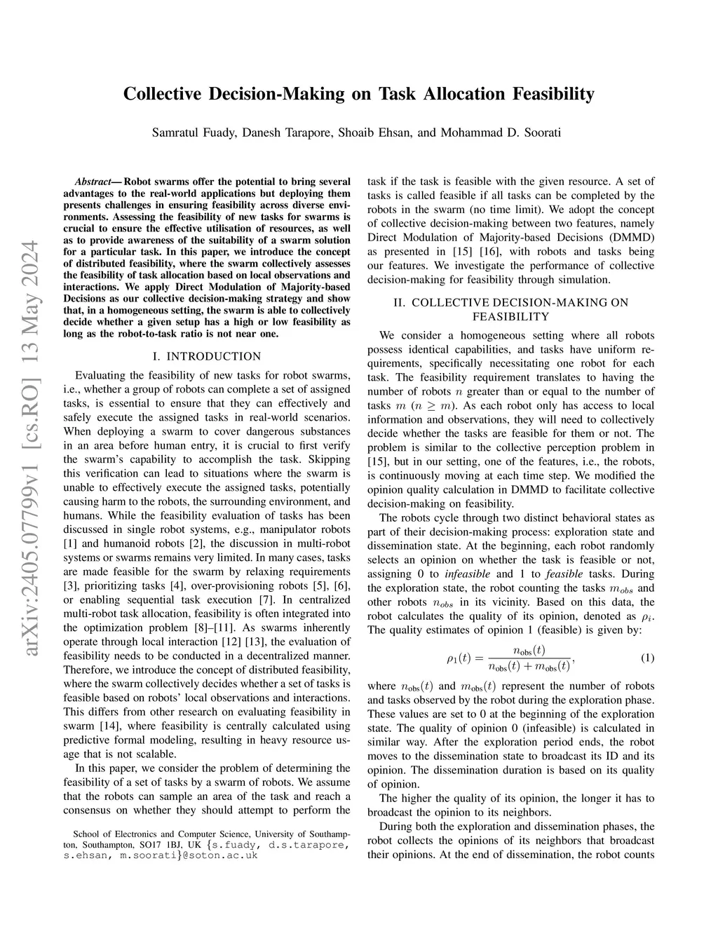 Collective Decision-Making on Task Allocation Feasibility