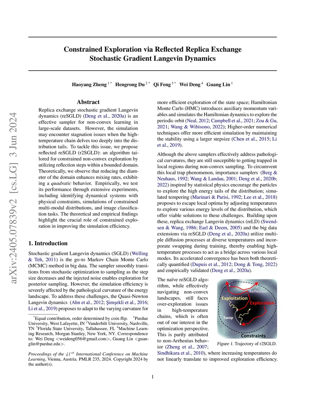 Replica exchange stochastic gradient Langevin dynamics (reSGLD) is an effective sampler for non-convex learning in large-scale datasets. However, the simulation may encounter stagnation issues when the high-temperature chain delves too deeply into the distribution tails. To tackle this issue, we propose reflected reSGLD (r2SGLD): an algorithm tailored for constrained non-convex exploration by utilizing reflection steps within a bounded domain. Theoretically, we observe that reducing the diameter of the domain enhances mixing rates, exhibiting a behavior. Empirically, we test its performance through extensive experiments, including identifying dynamical systems with physical constraints, simulations of constrained multi-modal distributions, and image classification tasks. The theoretical and empirical findings highlight the crucial role of constrained exploration in improving the simulation efficiency.