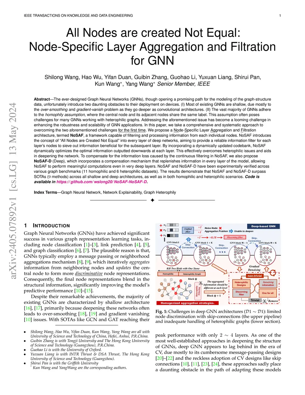 The ever-designed Graph Neural Networks, though opening a promising path for the modeling of the graph-structure data, unfortunately introduce two daunting obstacles to their deployment on devices. (I) Most of existing GNNs are shallow, due mostly to the over-smoothing and gradient-vanish problem as they go deeper as convolutional architectures. (II) The vast majority of GNNs adhere to the homophily assumption, where the central node and its adjacent nodes share the same label. This assumption often poses challenges for many GNNs working with heterophilic graphs. Addressing the aforementioned issue has become a looming challenge in enhancing the robustness and scalability of GNN applications. In this paper, we take a comprehensive and systematic approach to overcoming the two aforementioned challenges for the first time. We propose a Node-Specific Layer Aggregation and Filtration architecture, termed NoSAF, a framework capable of filtering and processing information from each individual nodes. NoSAF introduces the concept of "All Nodes are Created Not Equal" into every layer of deep networks, aiming to provide a reliable information filter for each layer's nodes to sieve out information beneficial for the subsequent layer. By incorporating a dynamically updated codebank, NoSAF dynamically optimizes the optimal information outputted downwards at each layer. This effectively overcomes heterophilic issues and aids in deepening the network. To compensate for the information loss caused by the continuous filtering in NoSAF, we also propose NoSAF-D (Deep), which incorporates a compensation mechanism that replenishes information in every layer of the model, allowing NoSAF to perform meaningful computations even in very deep layers.