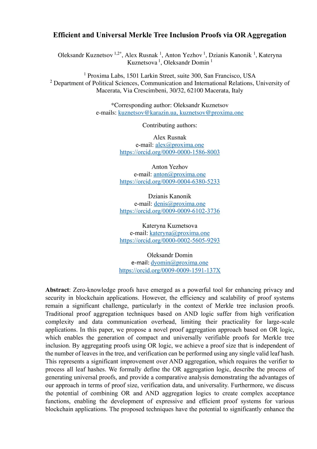 Zero-knowledge proofs have emerged as a powerful tool for enhancing privacy and security in blockchain applications. However, the efficiency and scalability of proof systems remain a significant challenge, particularly in the context of Merkle tree inclusion proofs. Traditional proof aggregation techniques based on AND logic suffer from high verification complexity and data communication overhead, limiting their practicality for large-scale applications. In this paper, we propose a novel proof aggregation approach based on OR logic, which enables the generation of compact and universally verifiable proofs for Merkle tree inclusion. By aggregating proofs using OR logic, we achieve a proof size that is independent of the number of leaves in the tree, and verification can be performed using any single valid leaf hash. This represents a significant improvement over AND aggregation, which requires the verifier to process all leaf hashes. We formally define the OR aggregation logic, describe the process of generating universal proofs, and provide a comparative analysis demonstrating the advantages of our approach in terms of proof size, verification data, and universality. Furthermore, we discuss the potential of combining OR and AND aggregation logics to create complex acceptance functions, enabling the development of expressive and efficient proof systems for various blockchain applications. The proposed techniques have the potential to significantly enhance the scalability, efficiency, and flexibility of zero-knowledge proof systems, paving the way for more practical and adaptive solutions in the blockchain ecosystem.