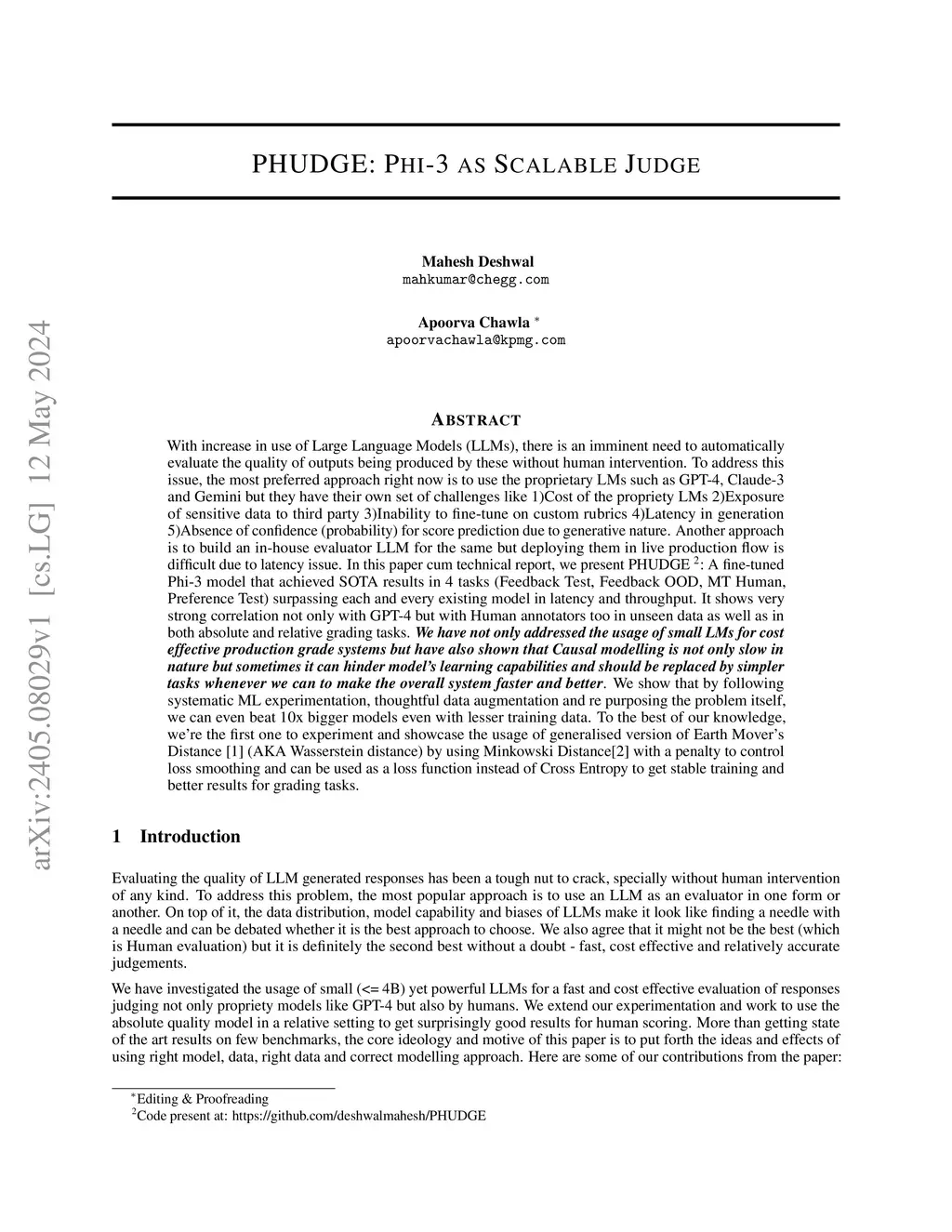 In this paper cum technical report, we present PHUDGE A fine tuned Phi3 model that achieved SOTA results in 4 tasks as Feedback Test, Feedback OOD, MT Human, Preference Test surpassing each and every existing model in latency and throughput. It shows very strong correlation not only with GPT4 but with Human annotators too in unseen data as well as in both absolute and relative grading tasks. We have not only addressed the usage of small LMs for cost effective production grade systems but have also shown that Causal modelling is not only slow in nature but sometimes it can hinder models learning capabilities and should be replaced by simpler tasks whenever we can to make the overall system faster and better. We show that by following systematic ML experimentation, thoughtful data augmentation and re purposing the problem itself, we can even beat 10x bigger models even with lesser training data. To the best of our knowledge, we are re the first one to experiment and showcase the usage of generalised version of Earth Movers Distance AKA Wasserstein distance by using Minkowski Distance with a penalty to control loss smoothing and can be used as a loss function instead of Cross Entropy to get stable training and better results for grading tasks.