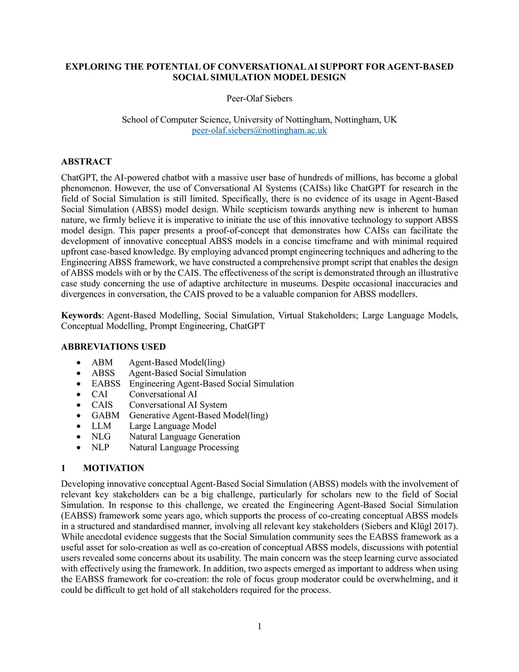 ChatGPT, the AI-powered chatbot with a massive user base of hundreds of millions, has become a global phenomenon. However, the use of Conversational AI Systems (CAISs) like ChatGPT for research in the field of Social Simulation is still limited. Specifically, there is no evidence of its usage in Agent-Based Social Simulation (ABSS) model design. This paper takes a crucial first step toward exploring the untapped potential of this emerging technology in the context of ABSS model design. The research presented here demonstrates how CAISs can facilitate the development of innovative conceptual ABSS models in a concise timeframe and with minimal required upfront case-based knowledge. By employing advanced prompt engineering techniques and adhering to the Engineering ABSS framework, we have constructed a comprehensive prompt script that enables the design of conceptual ABSS models with or by the CAIS. A proof-of-concept application of the prompt script, used to generate the conceptual ABSS model for a case study on the impact of adaptive architecture in a museum environment, illustrates the practicality of the approach. Despite occasional inaccuracies and conversational divergence, the CAIS proved to be a valuable companion for ABSS modellers.