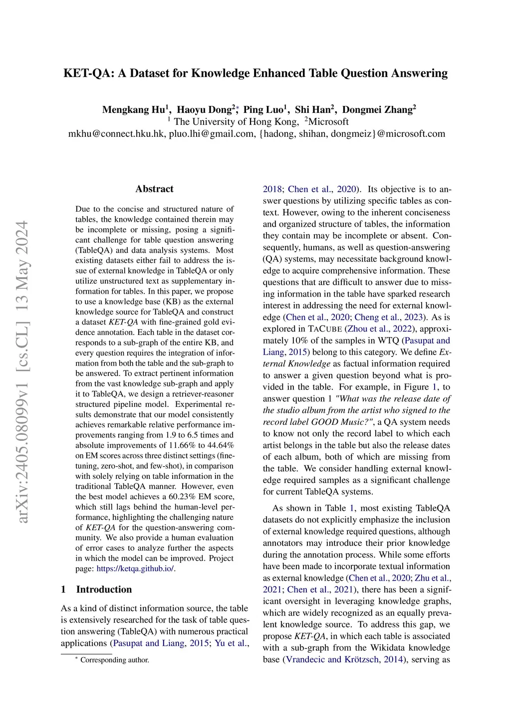 KET-QA: A Dataset for Knowledge Enhanced Table Question Answering
