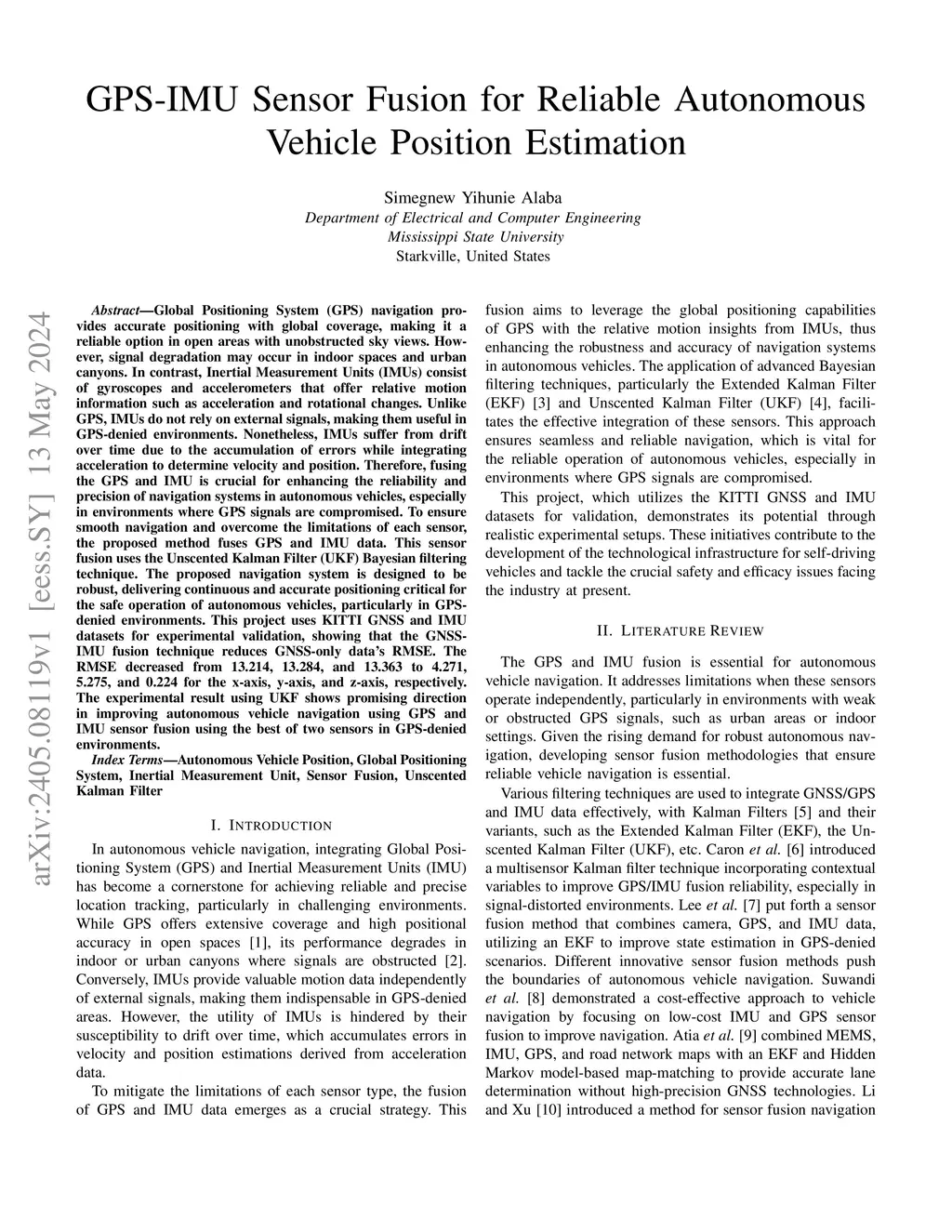 GPS-IMU Sensor Fusion for Reliable Autonomous Vehicle Position