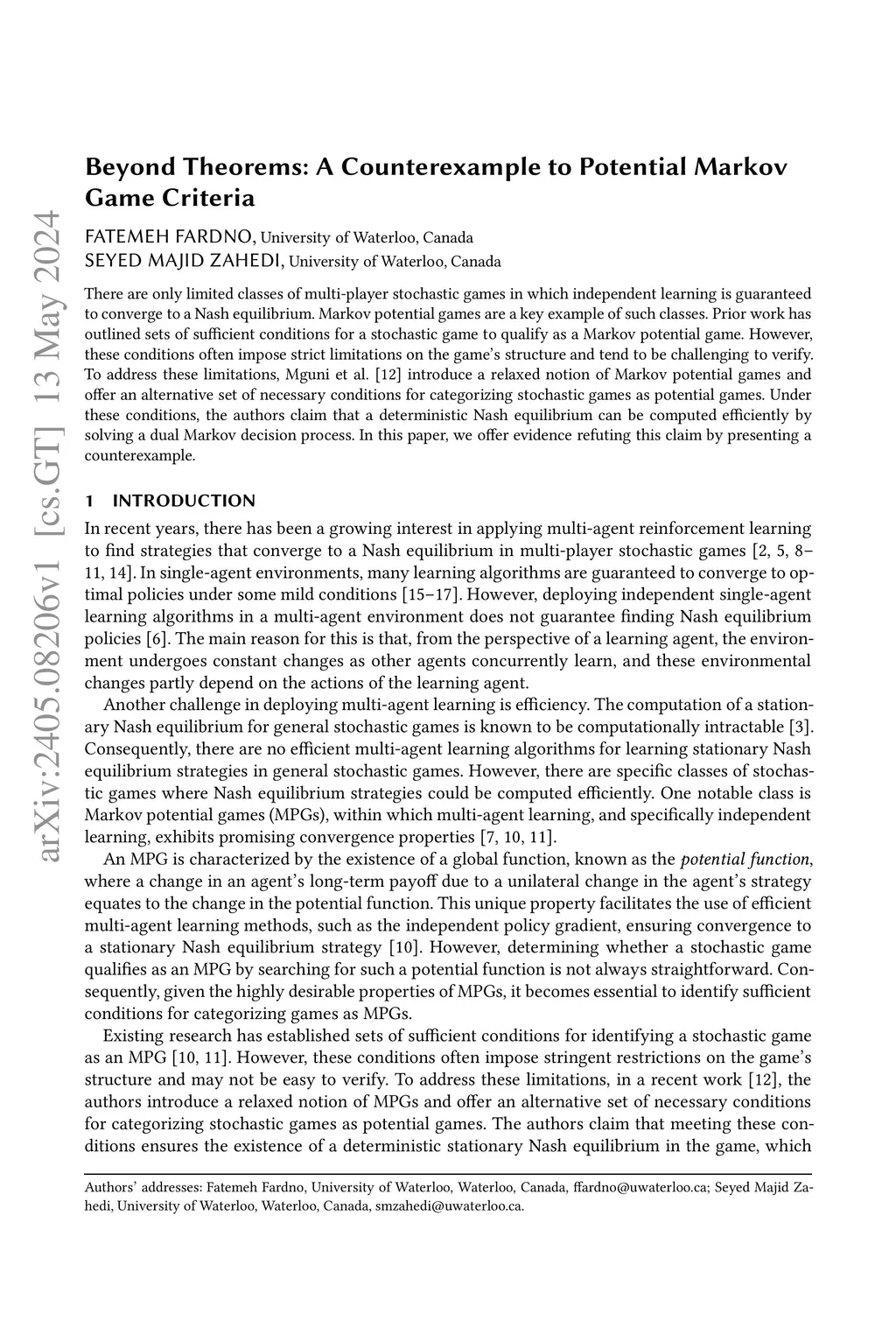Beyond Theorems: A Counterexample to Potential Markov Game Criteria