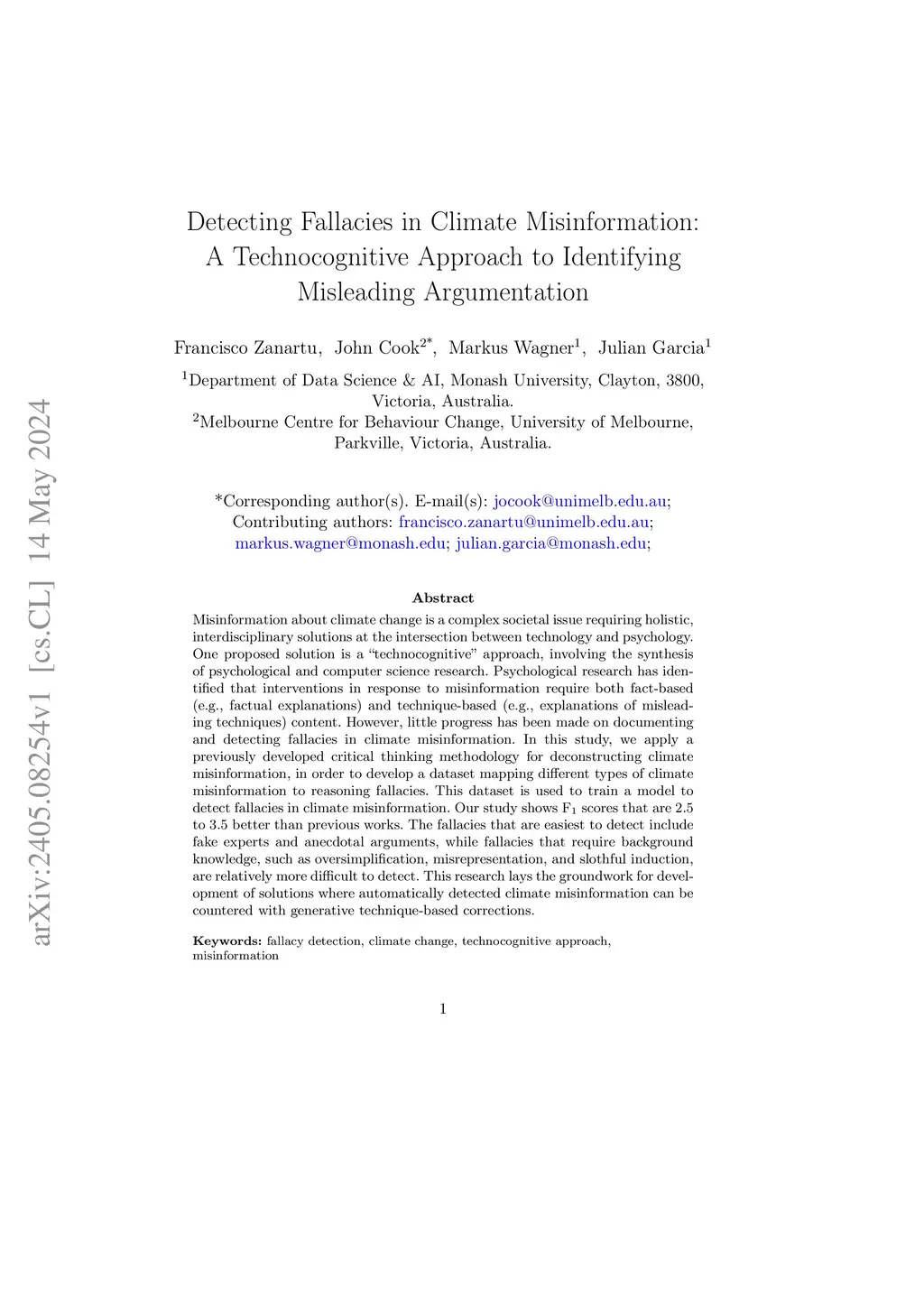 Detecting Fallacies in Climate Misinformation: A Technocognitive
