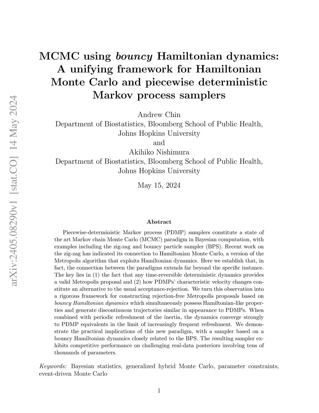 for Hamiltonian Monte Carlo and piecewise deterministic Markov process