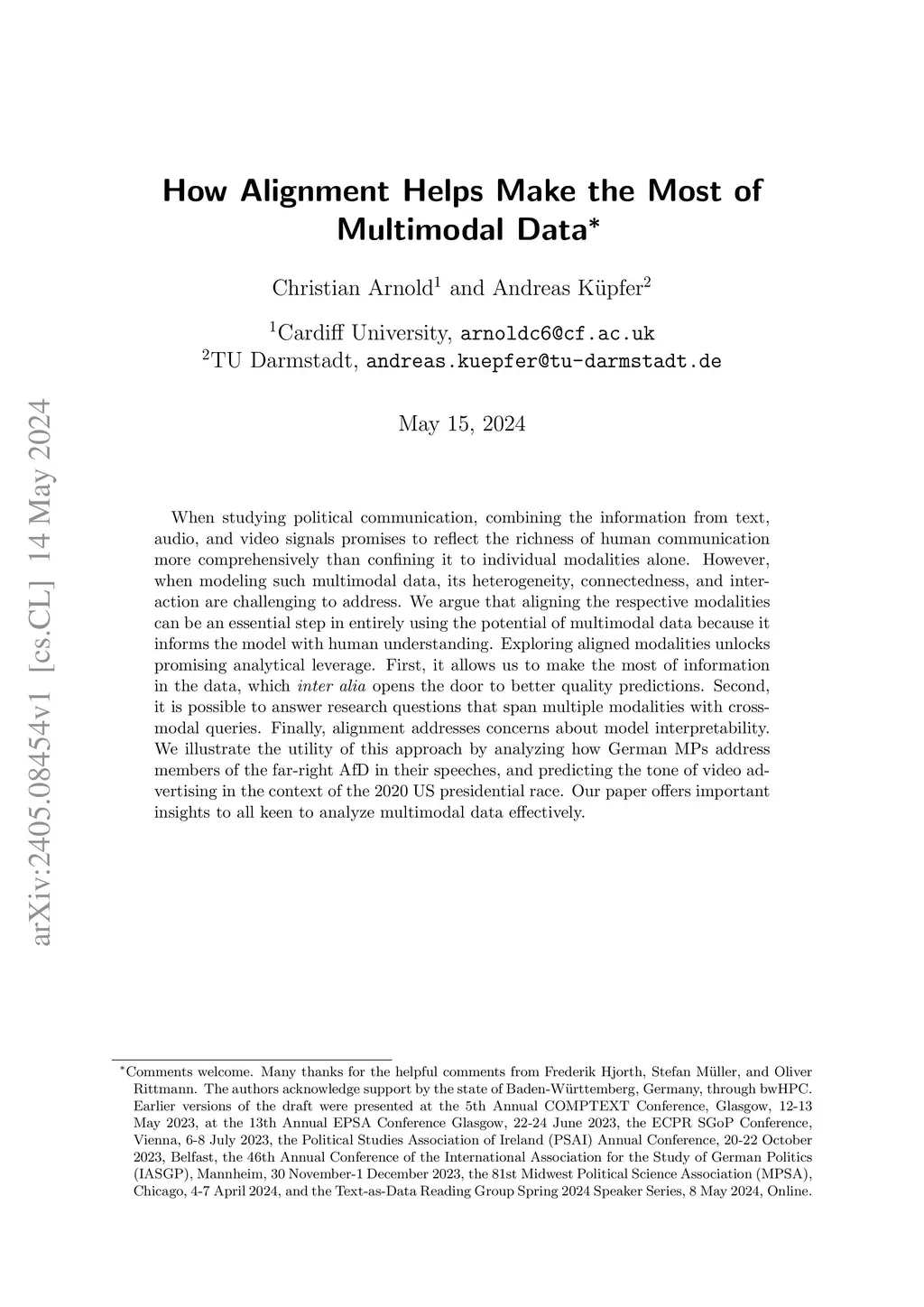 Political scientists increasingly analyze multimodal data. However, the effective analysis of such data requires aligning information across different modalities. In our paper, we demonstrate the significance of such alignment. Informed by a systematic review of 2,703 papers, we find that political scientists typically do not align their multimodal data. Introducing a decision tree that guides alignment choices, our framework highlights alignment's untapped potential and provides concrete advice in research design and modeling decisions. We illustrate alignment's analytical value through two applications: predicting tonality in U.S. presidential campaign ads and cross-modal querying of German parliamentary speeches to examine responses to the far-right AfD.