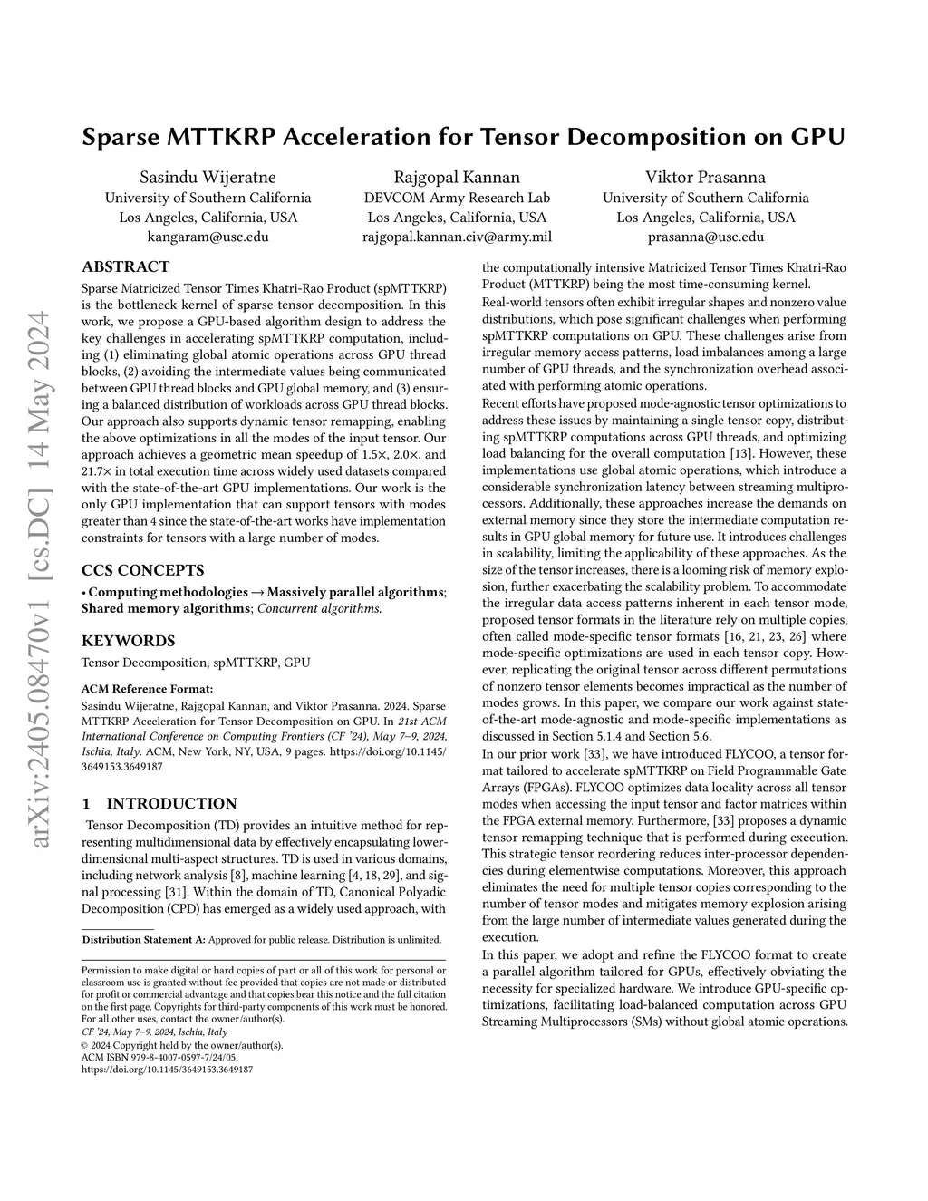 Sparse MTTKRP Acceleration for Tensor Decomposition on GPU
