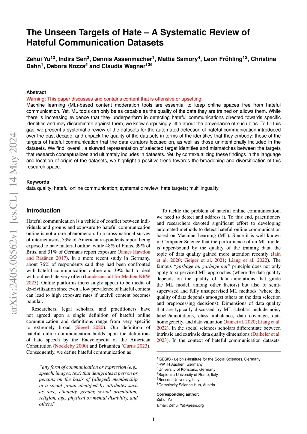 The Unseen Targets of Hate -- A Systematic Review of Hateful