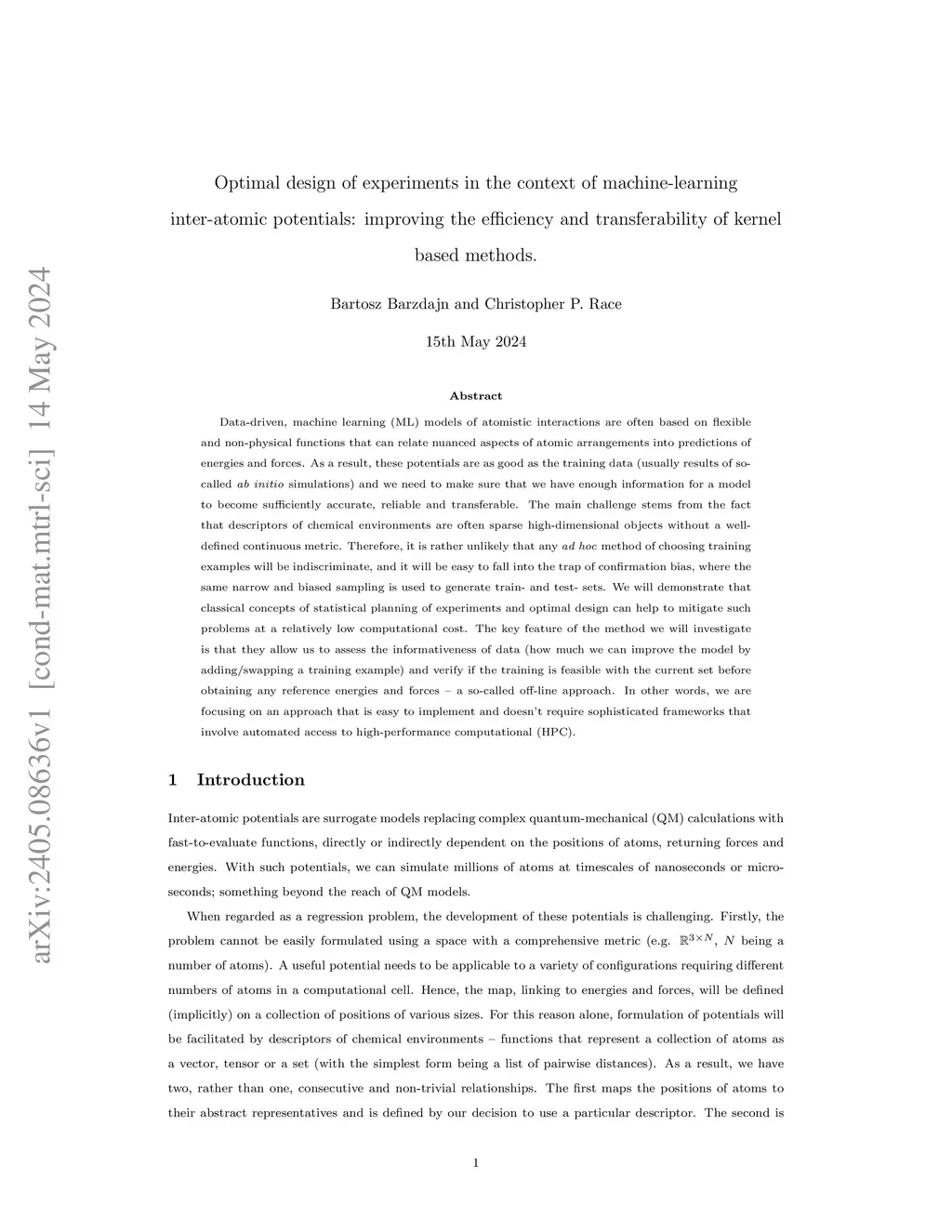 Data-driven, machine learning (ML) models of atomistic interactions are often based on flexible and non-physical functions that can relate nuanced aspects of atomic arrangements into predictions of energies and forces. As a result, these potentials are as good as the training data (usually results of so-called ab initio simulations) and we need to make sure that we have enough information for a model to become sufficiently accurate, reliable and transferable. The main challenge stems from the fact that descriptors of chemical environments are often sparse high-dimensional objects without a well-defined continuous metric. Therefore, it is rather unlikely that any ad hoc method of choosing training examples will be indiscriminate, and it will be easy to fall into the trap of confirmation bias, where the same narrow and biased sampling is used to generate train- and test- sets. We will demonstrate that classical concepts of statistical planning of experiments and optimal design can help to mitigate such problems at a relatively low computational cost. The key feature of the method we will investigate is that they allow us to assess the informativeness of data (how much we can improve the model by adding/swapping a training example) and verify if the training is feasible with the current set before obtaining any reference energies and forces -- a so-called off-line approach. In other words, we are focusing on an approach that is easy to implement and doesn't require sophisticated frameworks that involve automated access to high-performance computational (HPC).