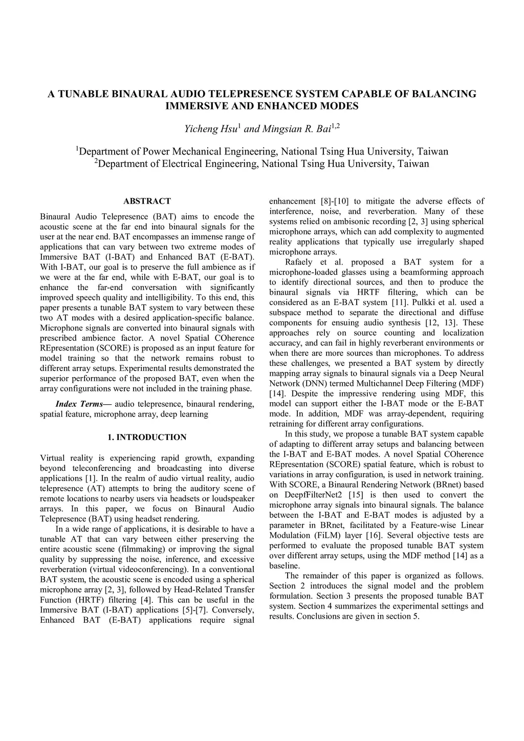 Binaural Audio Telepresence (BAT) aims to encode the acoustic scene at the far end into binaural signals for the user at the near end. BAT encompasses an immense range of applications that can vary between two extreme modes of Immersive BAT (I-BAT) and Enhanced BAT (E-BAT). With I-BAT, our goal is to preserve the full ambience as if we were at the far end, while with E-BAT, our goal is to enhance the far-end conversation with significantly improved speech quality and intelligibility. To this end, this paper presents a tunable BAT system to vary between these two AT modes with a desired application-specific balance. Microphone signals are converted into binaural signals with prescribed ambience factor. A novel Spatial COherence REpresentation (SCORE) is proposed as an input feature for model training so that the network remains robust to different array setups. Experimental results demonstrated the superior performance of the proposed BAT, even when the array configurations were not included in the training phase.