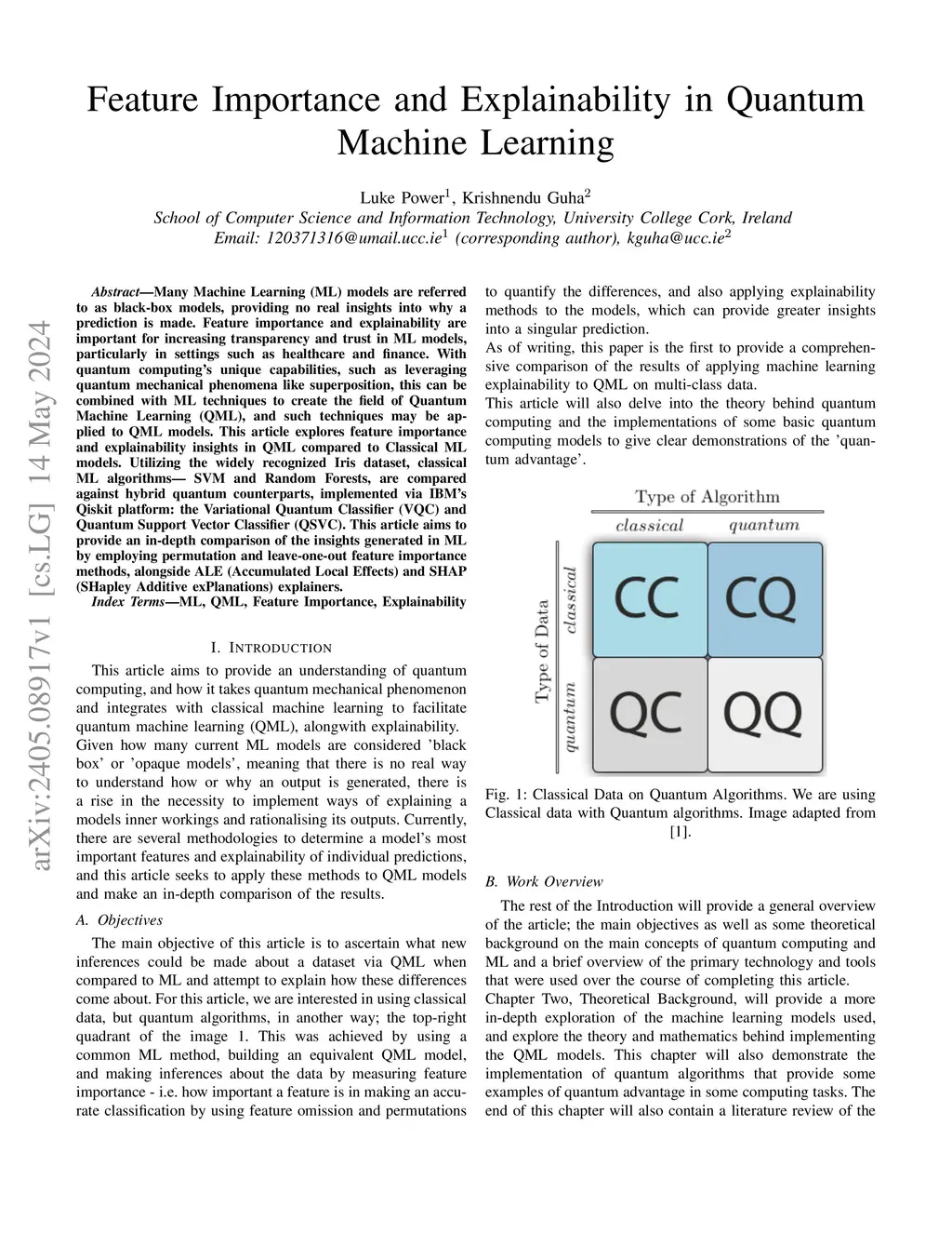 Many Machine Learning (ML) models are referred to as black box models, providing no real insights into why a prediction is made. Feature importance and explainability are important for increasing transparency and trust in ML models, particularly in settings such as healthcare and finance. With quantum computing's unique capabilities, such as leveraging quantum mechanical phenomena like superposition, which can be combined with ML techniques to create the field of Quantum Machine Learning (QML), and such techniques may be applied to QML models. This article explores feature importance and explainability insights in QML compared to Classical ML models. Utilizing the widely recognized Iris dataset, classical ML algorithms such as SVM and Random Forests, are compared against hybrid quantum counterparts, implemented via IBM's Qiskit platform: the Variational Quantum Classifier (VQC) and Quantum Support Vector Classifier (QSVC). This article aims to provide a comparison of the insights generated in ML by employing permutation and leave one out feature importance methods, alongside ALE (Accumulated Local Effects) and SHAP (SHapley Additive exPlanations) explainers.