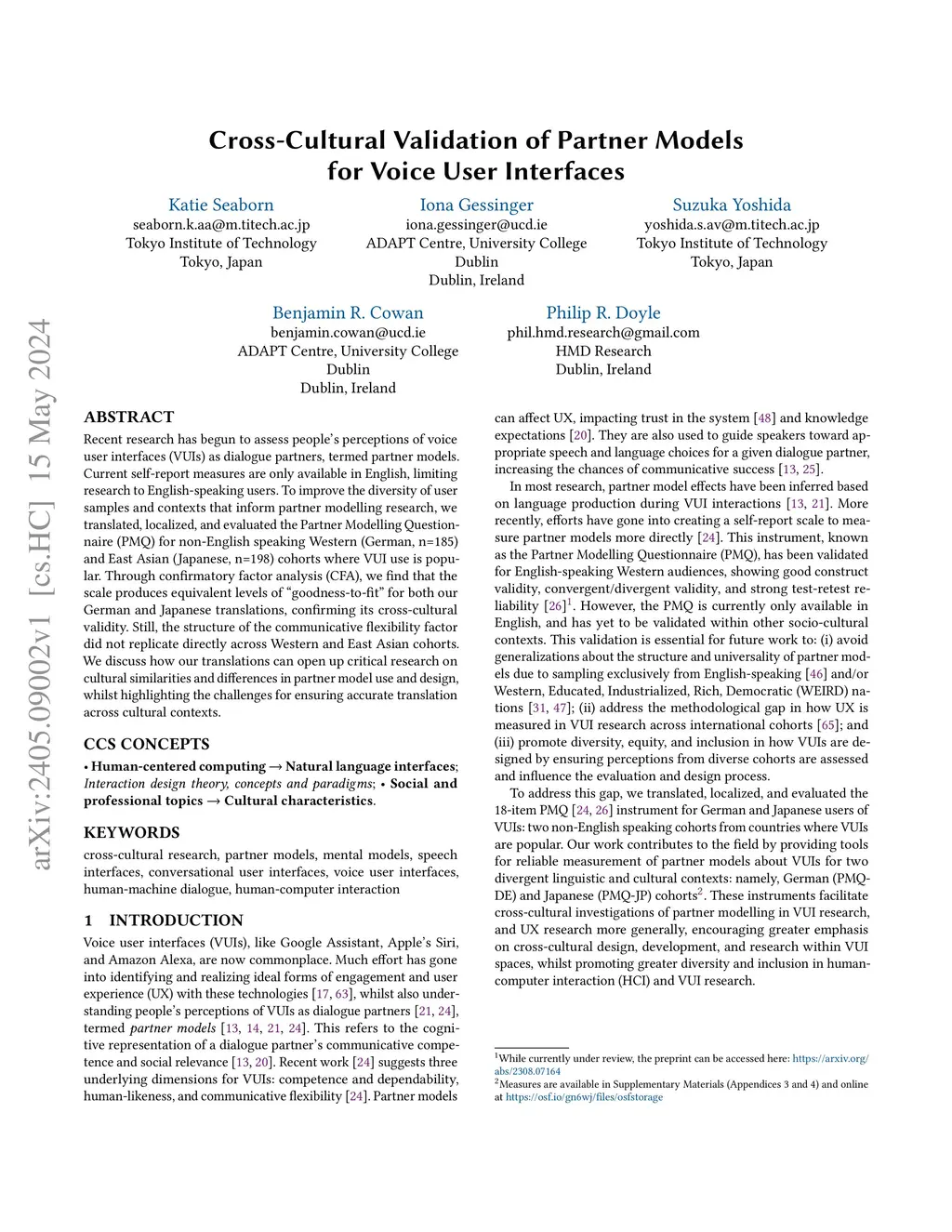 Cross-Cultural Validation of Partner Models for Voice User Interfaces