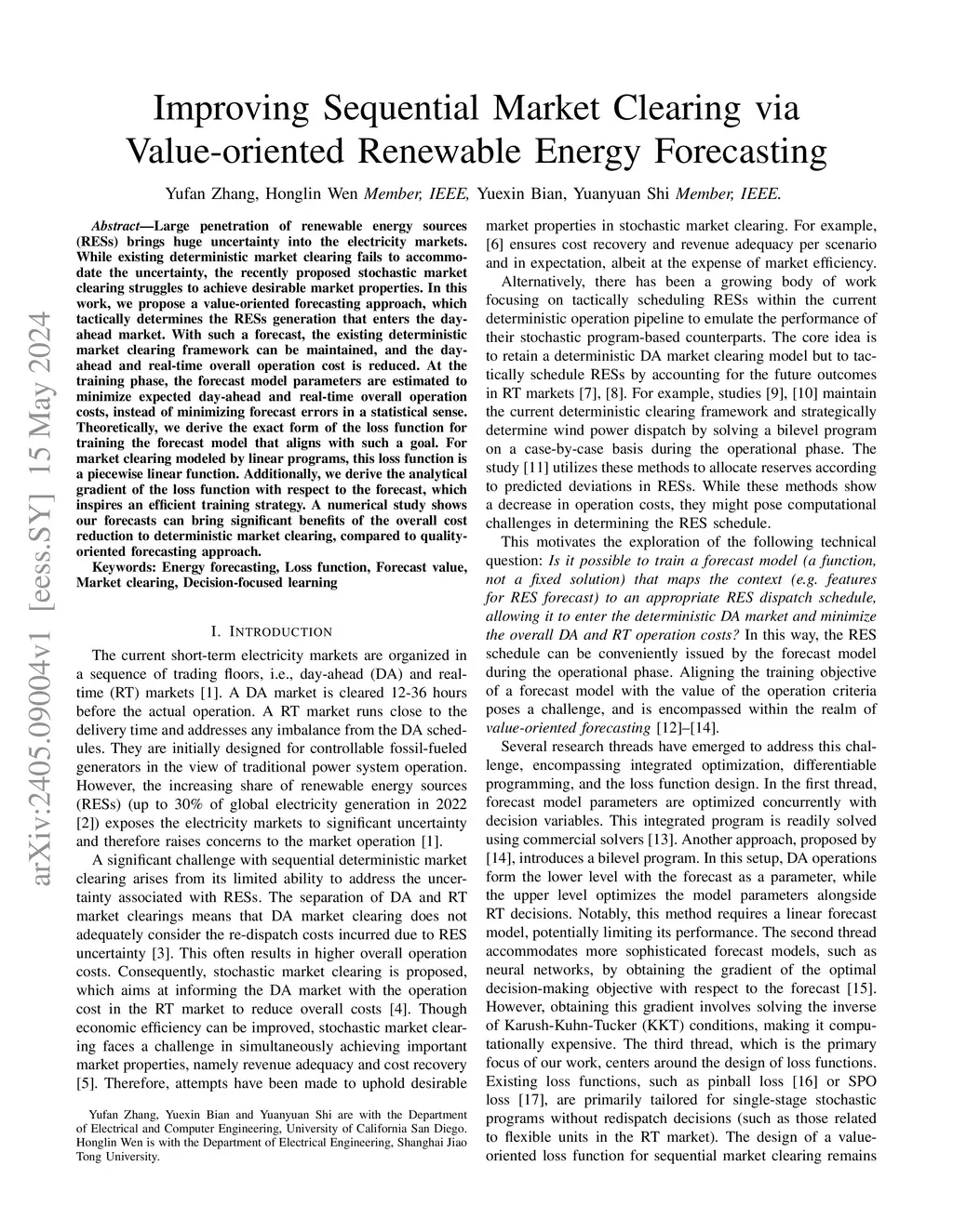 Large penetration of renewable energy sources (RESs) brings huge uncertainty into the electricity markets. The current deterministic clearing approach in the day-ahead (DA) market, where RESs participate based on expected production, has been criticized for causing a lack of coordination between the DA and real-time (RT) markets, leading to high overall operating costs. Previous works indicate that improving day-ahead RES entering quantities can significantly mitigate the drawbacks of deterministic clearing. In this work, we propose using a trained forecasting model, referred to as value-oriented forecasting, to determine RES Improved Entering Quantities (RIEQ) more efficiently during the operational phase. Unlike traditional models that minimize statistical forecasting errors, our approach trains model parameters to minimize the expected overall operating costs across both DA and RT markets. We derive the exact form of the loss function used for training, which becomes piecewise linear when market clearing is modeled by linear programs. Additionally, we provide the analytical gradient of the loss function with respect to the forecast, enabling an efficient training strategy. Numerical studies demonstrate that our forecasts significantly reduce overall operating costs for deterministic market clearing compared to conventional forecasts based on expected RES production.